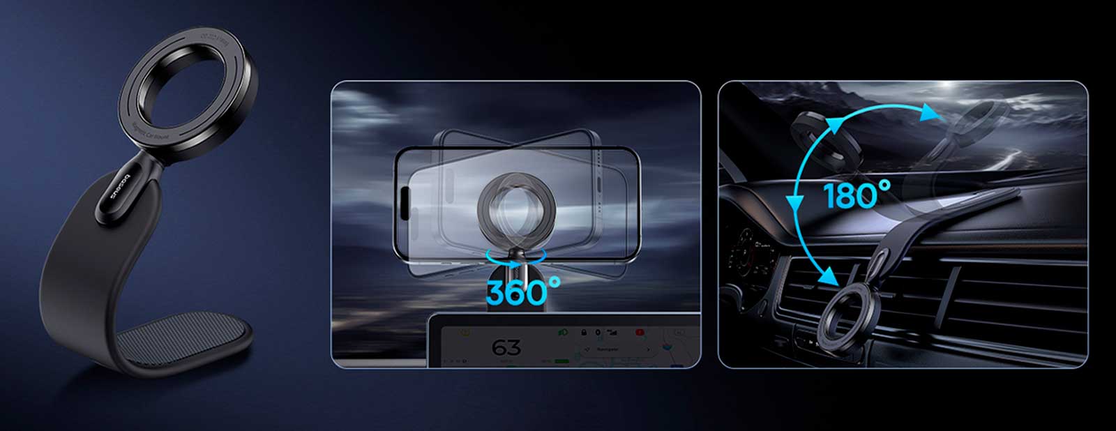 Данный держатель оснащен магнитной системой, которая обеспечивает надежное крепление смартфона, при этом не препятствуя доступу к экрану или портам устройства. Возможность поворота держателя на 360 градусов позволяет настроить угол