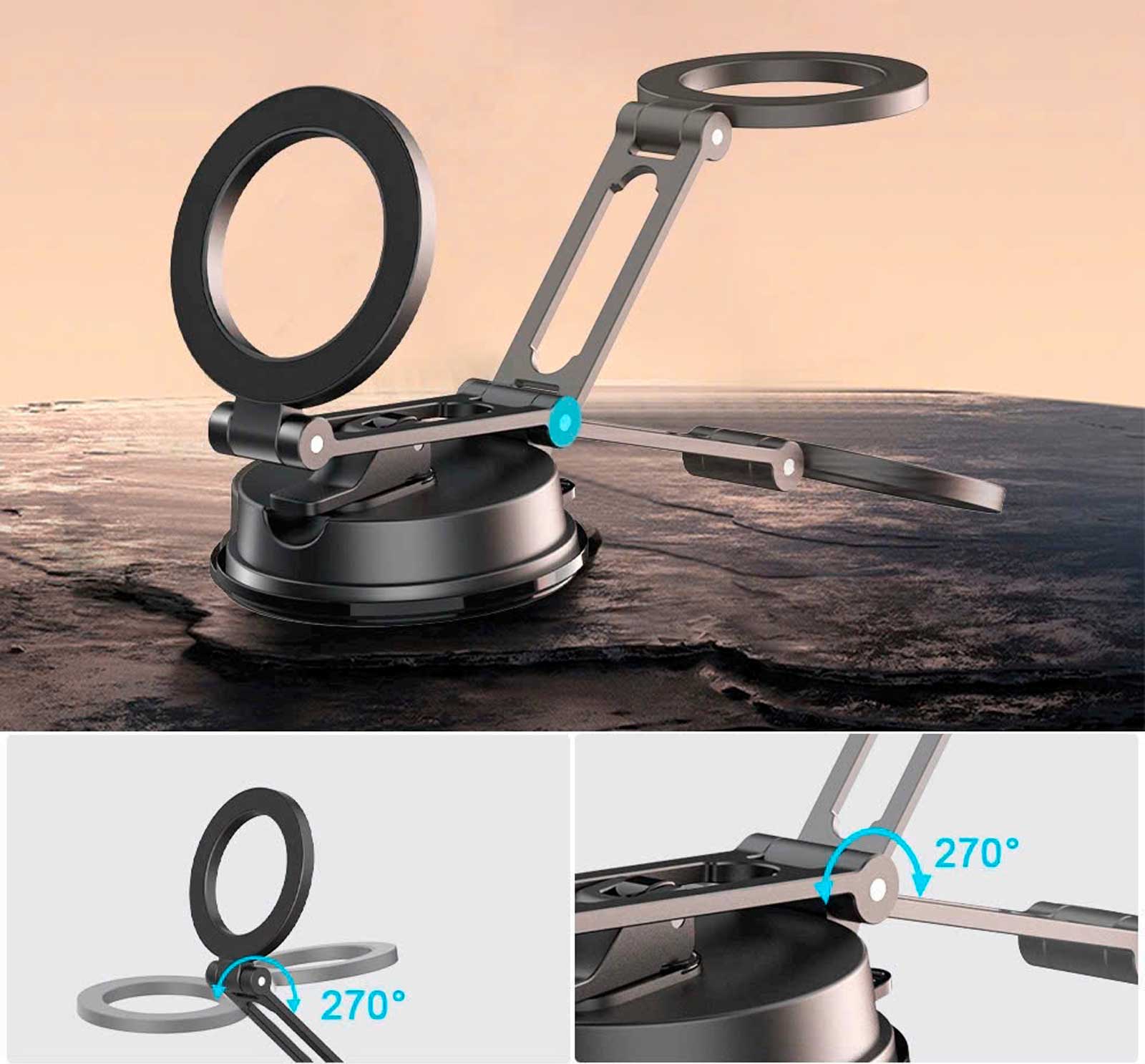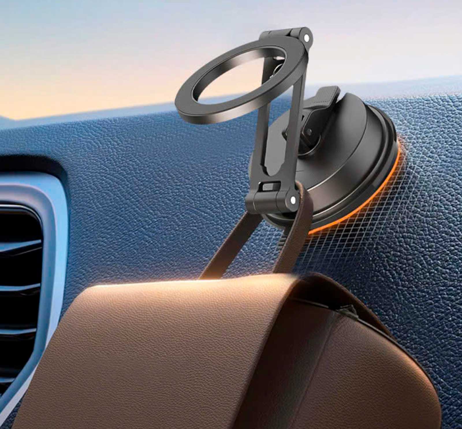 нарушая эстетику интерьера вашего автомобиля. Благодаря прочному основанию присоски он плотно прилегает к плоским поверхностям и обеспечивает безопасное использование.