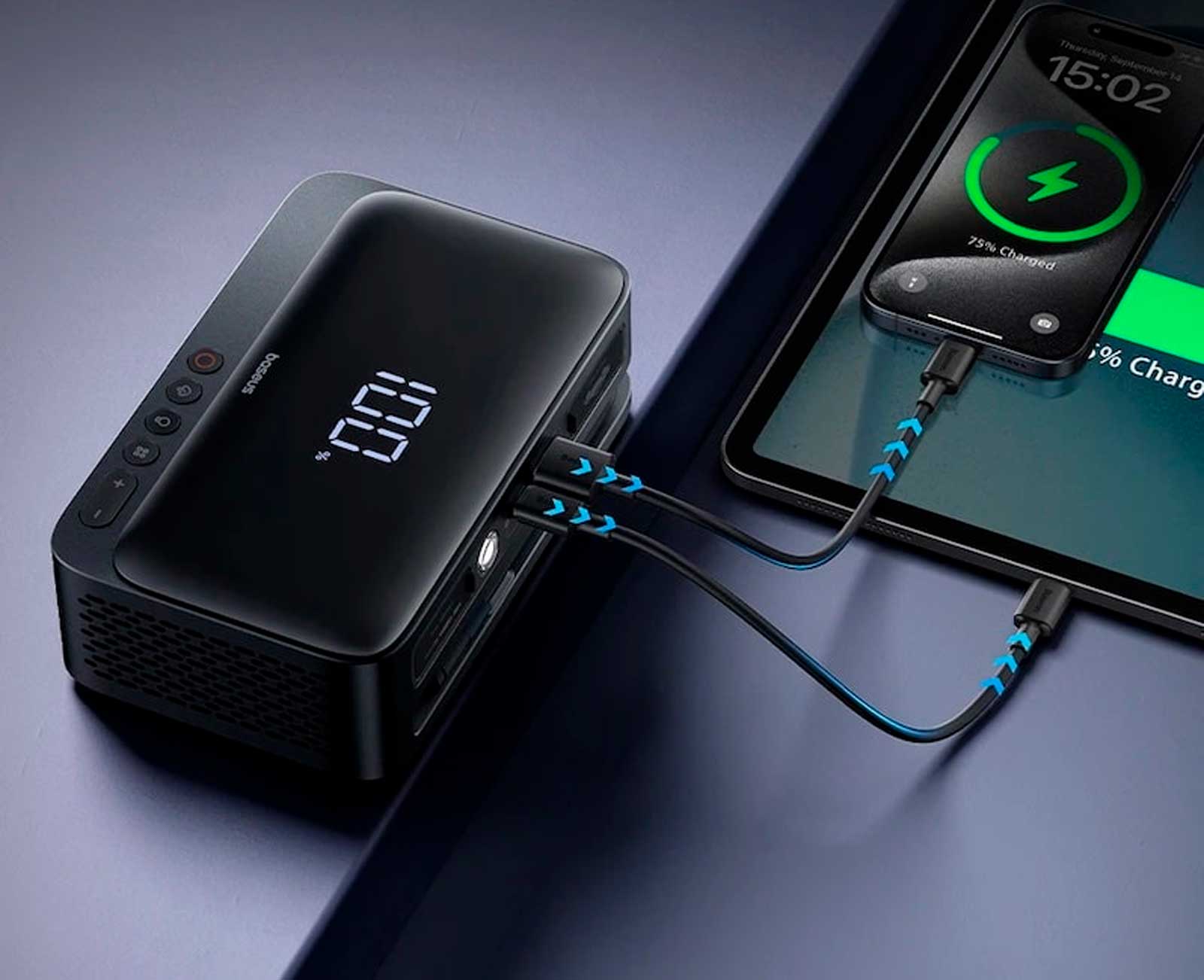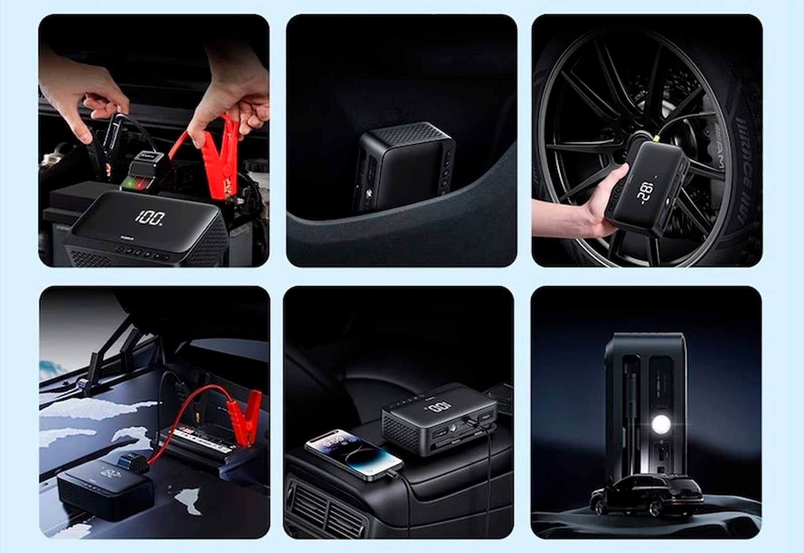 того, встроенные отсеки для хранения воздушных струй и трубок обеспечивают порядок, а компактные размеры позволяют легко переносить устройство. Бустер Baseus Super Energy 4in1 12V 6000mAh 600A гораздо меньше и легче традиционных