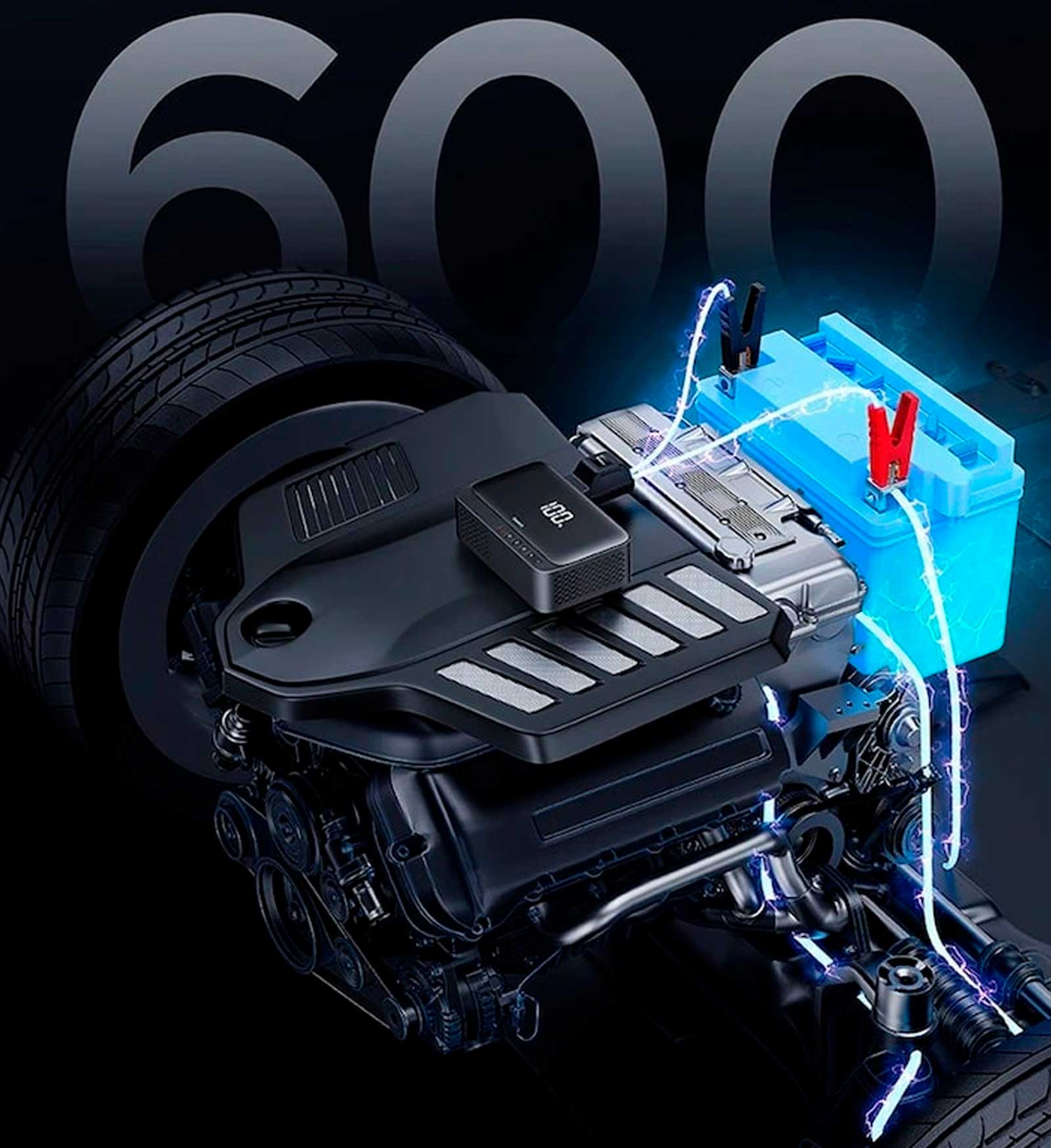 Бустер Baseus Super Energy 4in1 12V 6000mAh 600A обладает пиковым током 600А, что позволяет мгновенно заводить бензиновые автомобили объемом до 4 литров и дизели объемом до 2,5 литров. Аккумулятор специально разработан для легковых