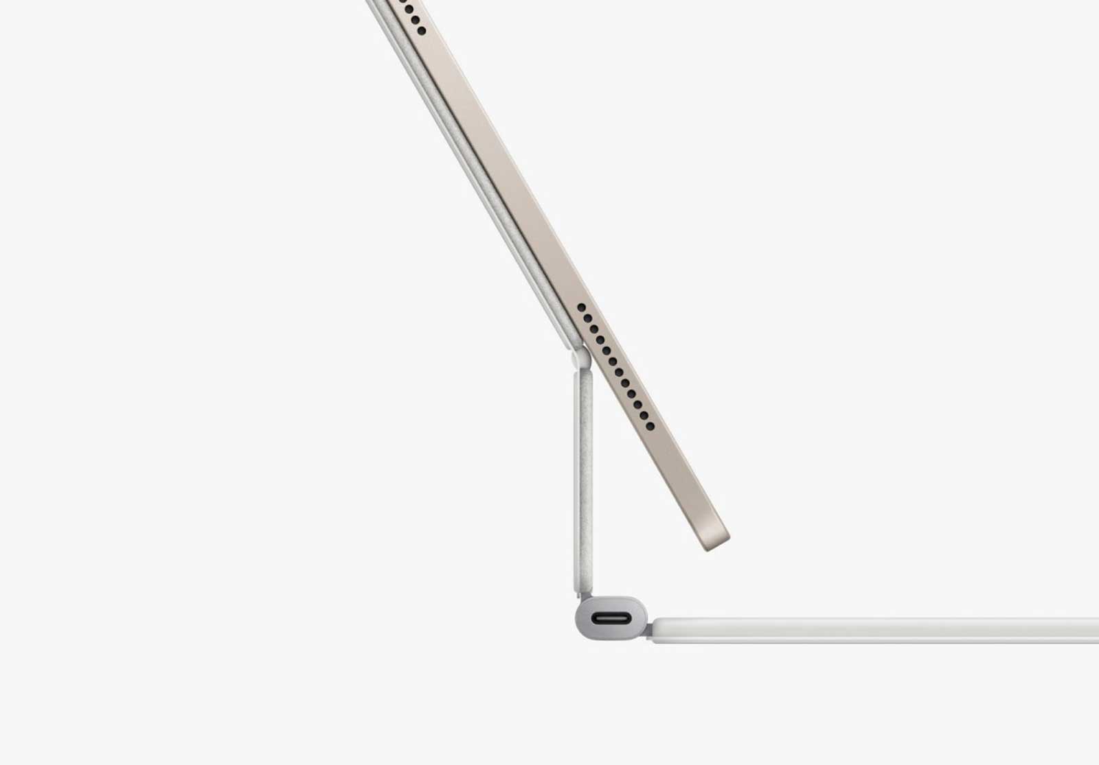 Apple Magic Keyboard подключается к iPad Air через магнитное крепление, обеспечивая надежное соединение и беспроводную зарядку устройства. Это исключает необходимость использования дополнительных кабелей, делая процесс зарядки