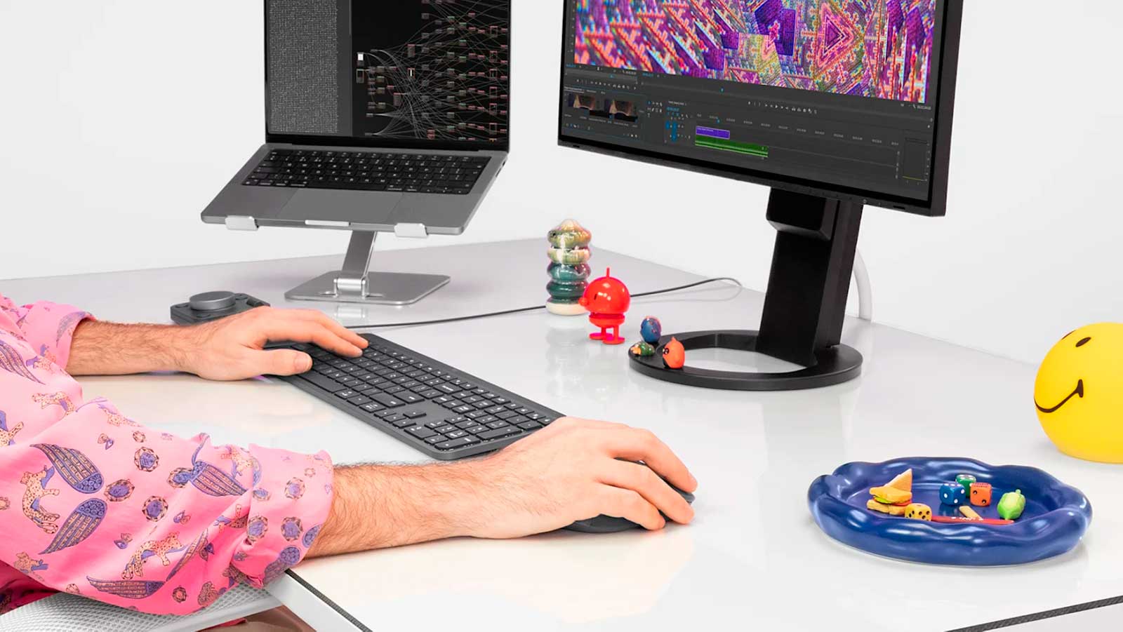 Поддерживайте рабочий процесс с кольцом действий: управляйте инструментами и ярлыками без лишних движений мыши. Персонализируйте ярлыки и подключайте плагины через Logi Options+.