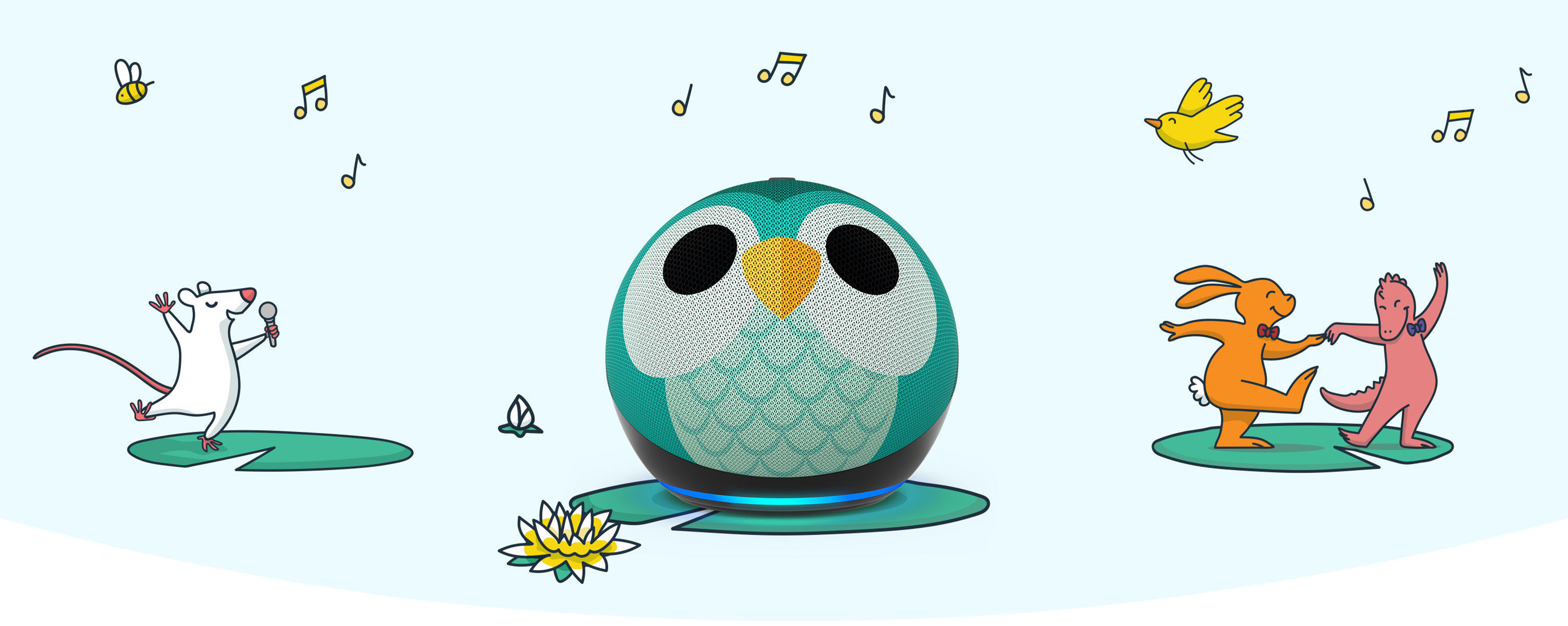 Echo Dot Kids использует Amazon Kids для автоматической фильтрации песен с ненормативной лексикой из Amazon Music, Apple Music или Spotify, чтобы дети могли весело слушать, петь и танцевать под любимые мелодии.
