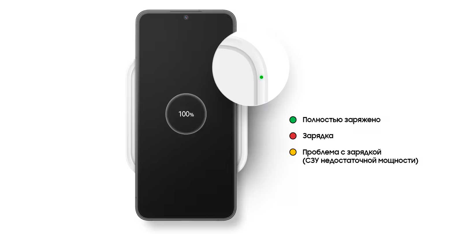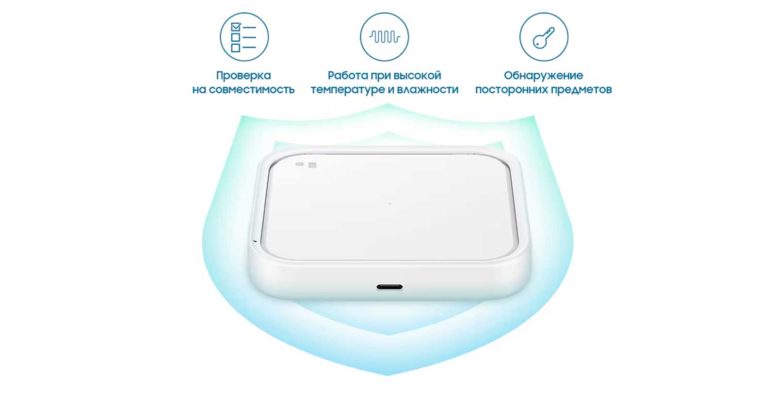 Данное беспроводное зарядное устройство — отличный выбор для защиты вашего устройства Galaxy от воздействия высоких температур и влажности, а также от перегрева во время зарядки. Оно также автоматически определяет наличие