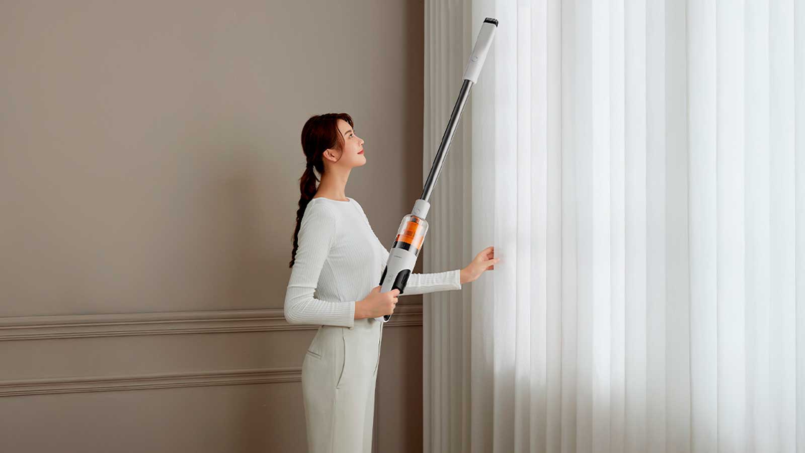 Благодаря небольшому весу и продуманной эргономике Deerma T10W удобно использовать не только на полу, но и для чистки верхних полок, карнизов или потолка. Держать пылесос комфортно, даже если уборка длится дольше. Если вам нужно