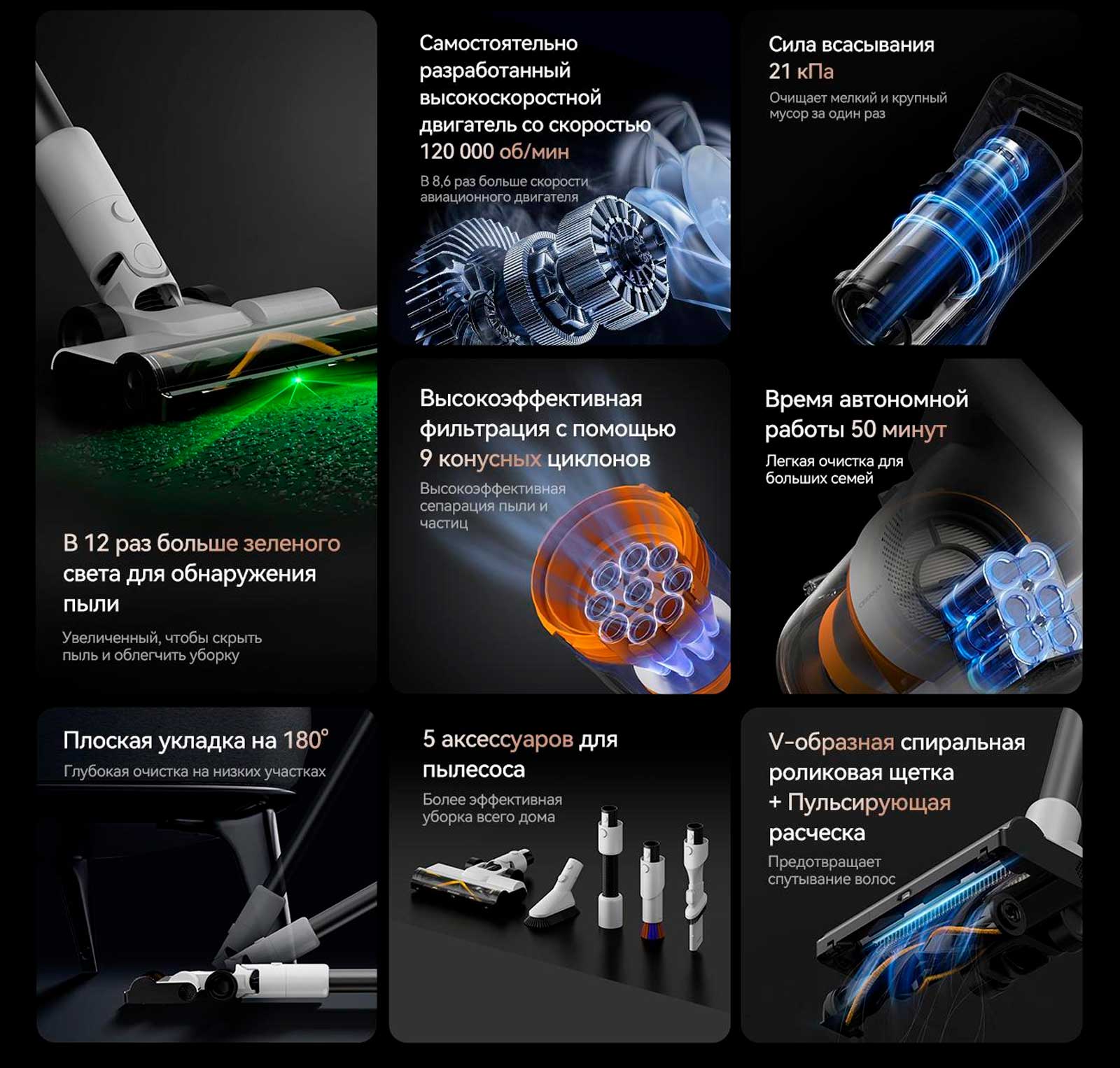 Представляет собой современный вертикальный пылесос, созданный для эффективной уборки жилых помещений. Благодаря компактной конструкции и эргономичному дизайну, устройство удобно лежит в руке и не вызывает усталости при длительном