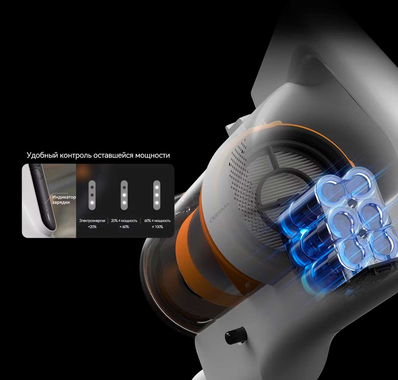 Крупный и мелкий мусор может быть очищен за одно движение. Самостоятельно разработанный высокоскоростной бесщеточный двигатель Delmar обеспечивает стабильную мощность всасывания, будь то пыль, волосы, крупные и мелкие частицы мусора