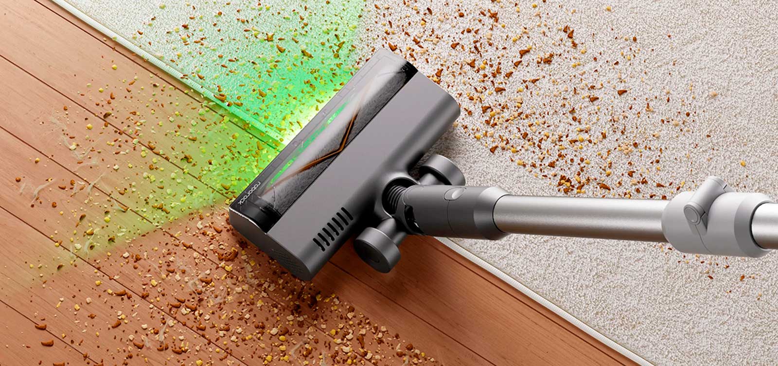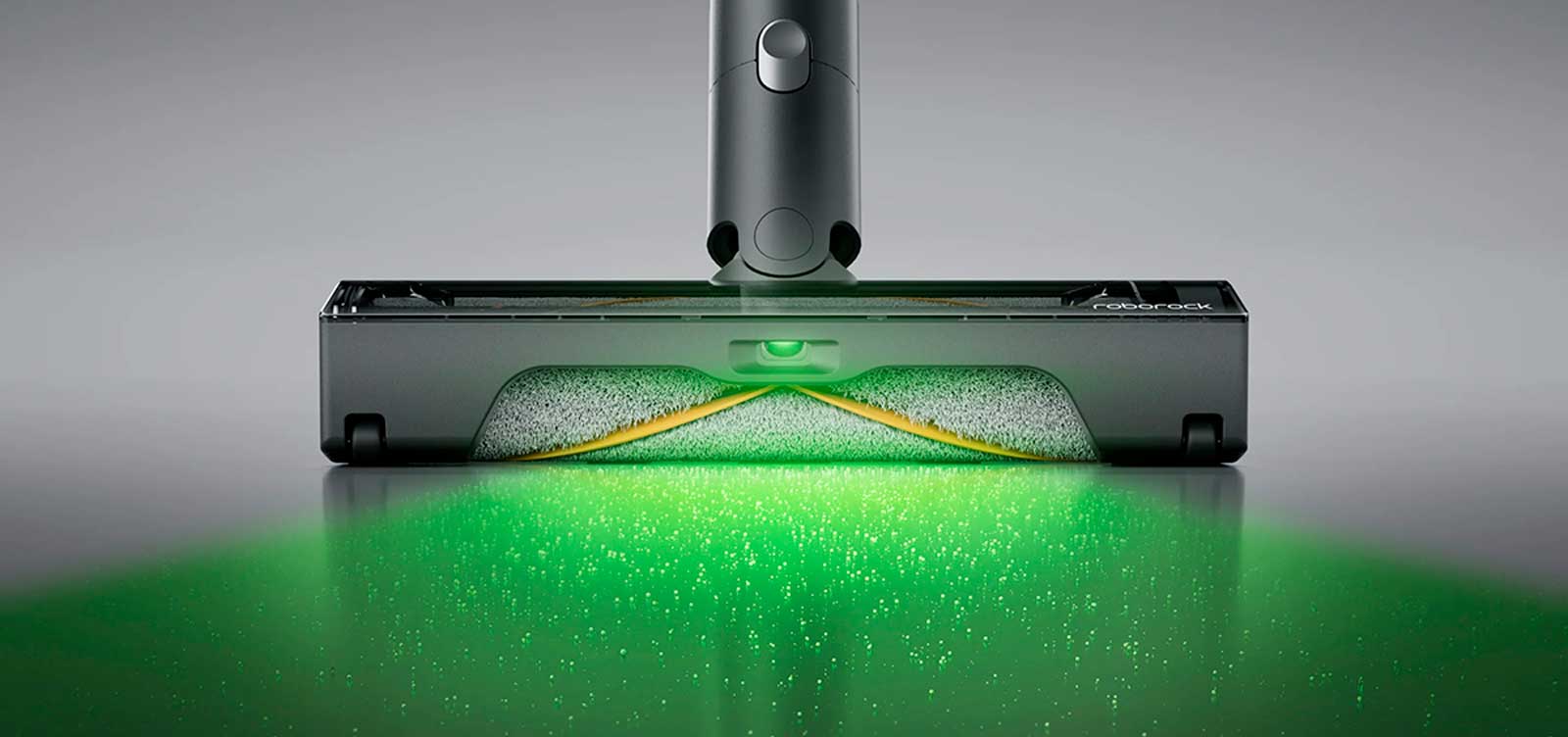 Основная щетка с яркой подсветкой зеленого цвета не оставит пыль незамеченной, выявляя любые загрязнения. Точно спроектированная подсветка с углом обзора 140° обнаруживает скрытые частицы, делая их видимыми на твёрдом полу.