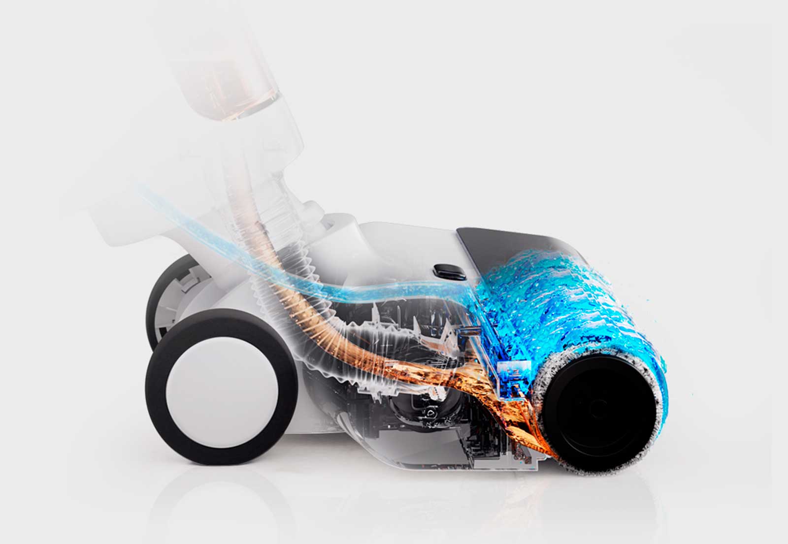 Во время уборки чистая вода подается на щетку, которая вращается со скоростью до 500 оборотов в минуту. Чистящий валик с электроприводом обеспечивает более глубокую и эффективную очистку, соединяя комфорт и производительность в одном устройстве.