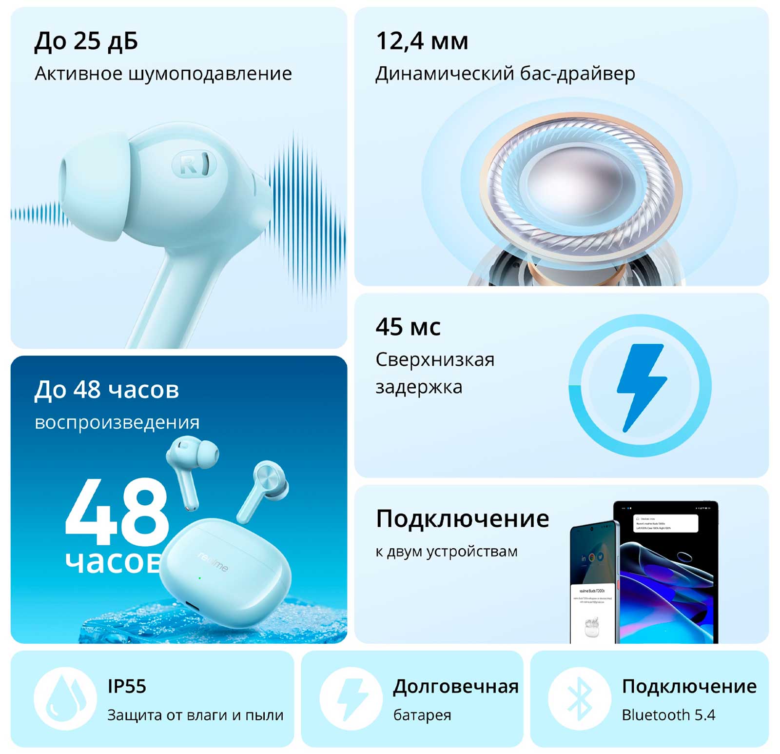 Защита от влаги:наушники IP55