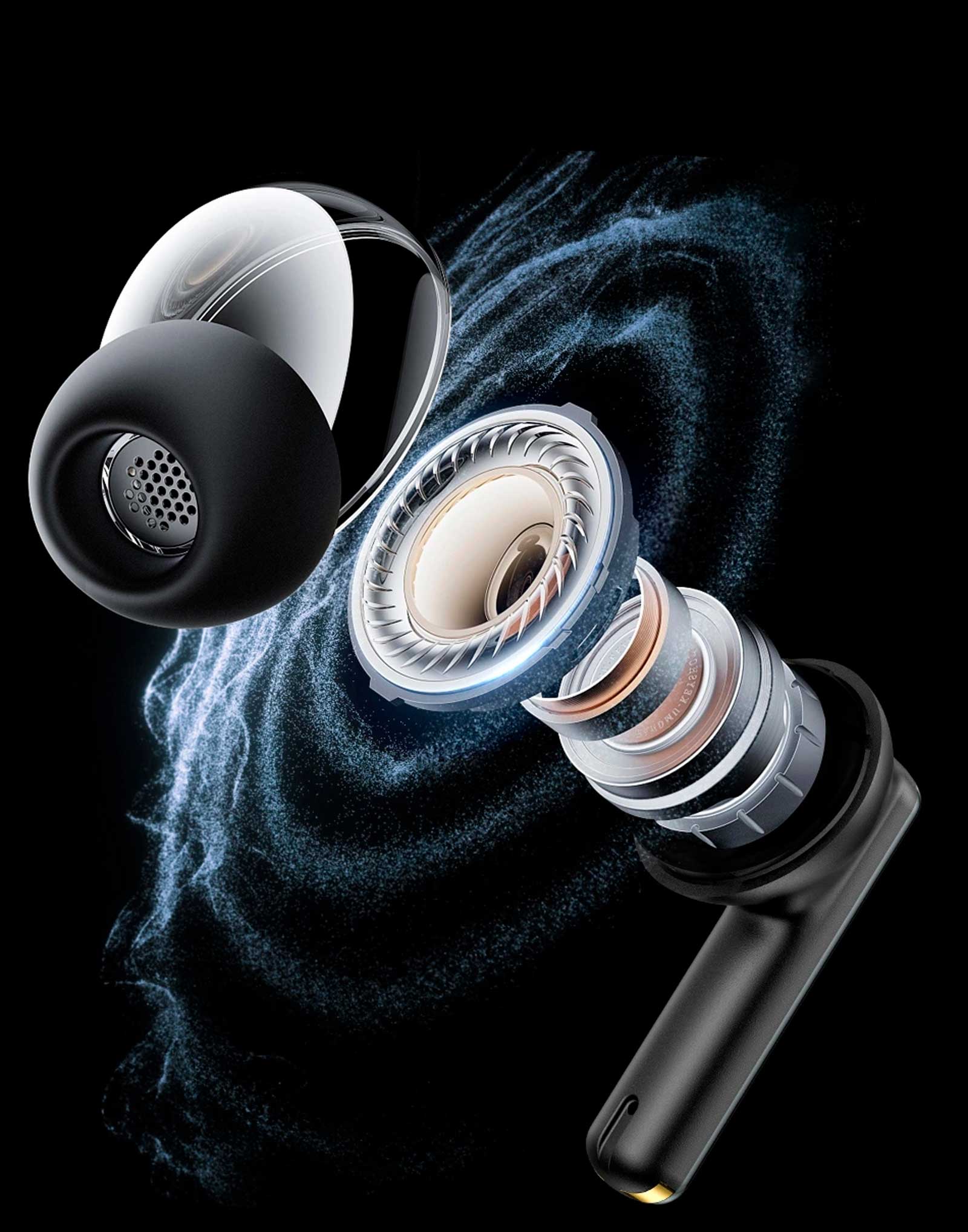 С технологией ANC (активное шумоподавление) и ENC (шумоподавление окружающей среды), в сочетании с внутриканальной конструкцией — глубина подавления шума достигает -42 дБ