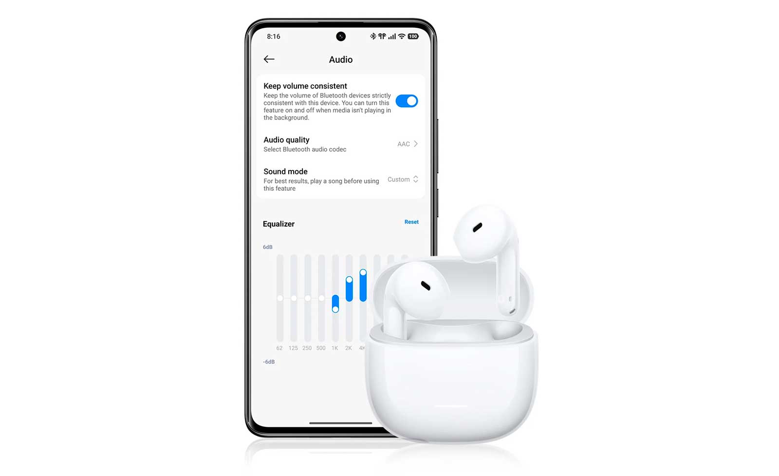 Легко управляйте своими наушниками через приложение Xiaomi Earbuds. Настраивайте эквалайзер и подбирайте звучание по своему вкусу. Приложение также поддерживает онлайн-обновления прошивки для непрерывного повышения
