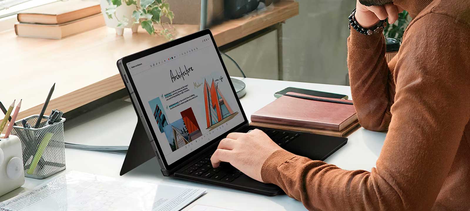Чехол-клавиатура сделает вашу работу легкой. Полноразмерные кнопки, функциональные клавиши и сенсорная панель в сочетании с режимом DeX легко имитируют работу на ноутбуке.