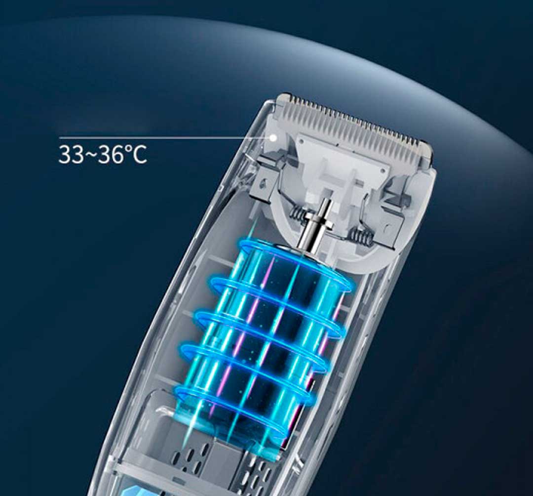 Триммер для детей оснащён инновационной системой контроля температуры: рабочая зона поддерживает комфортные 33–36 °C, предотвращая перегрев и обеспечивая безопасность при соприкосновении с нежной кожей ребёнка