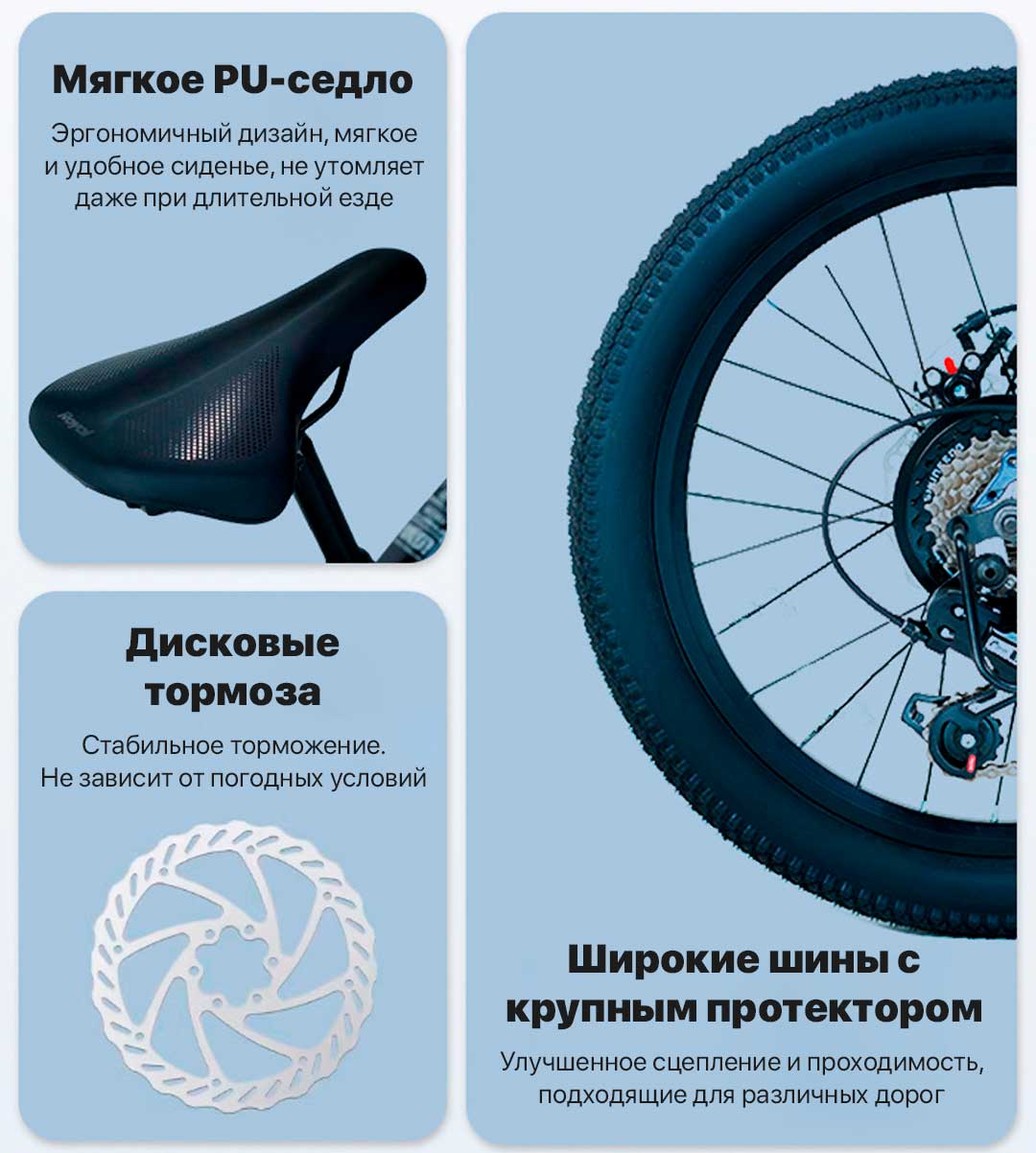 - удобная заниженная рама для быстрой посадки на велосипед;
