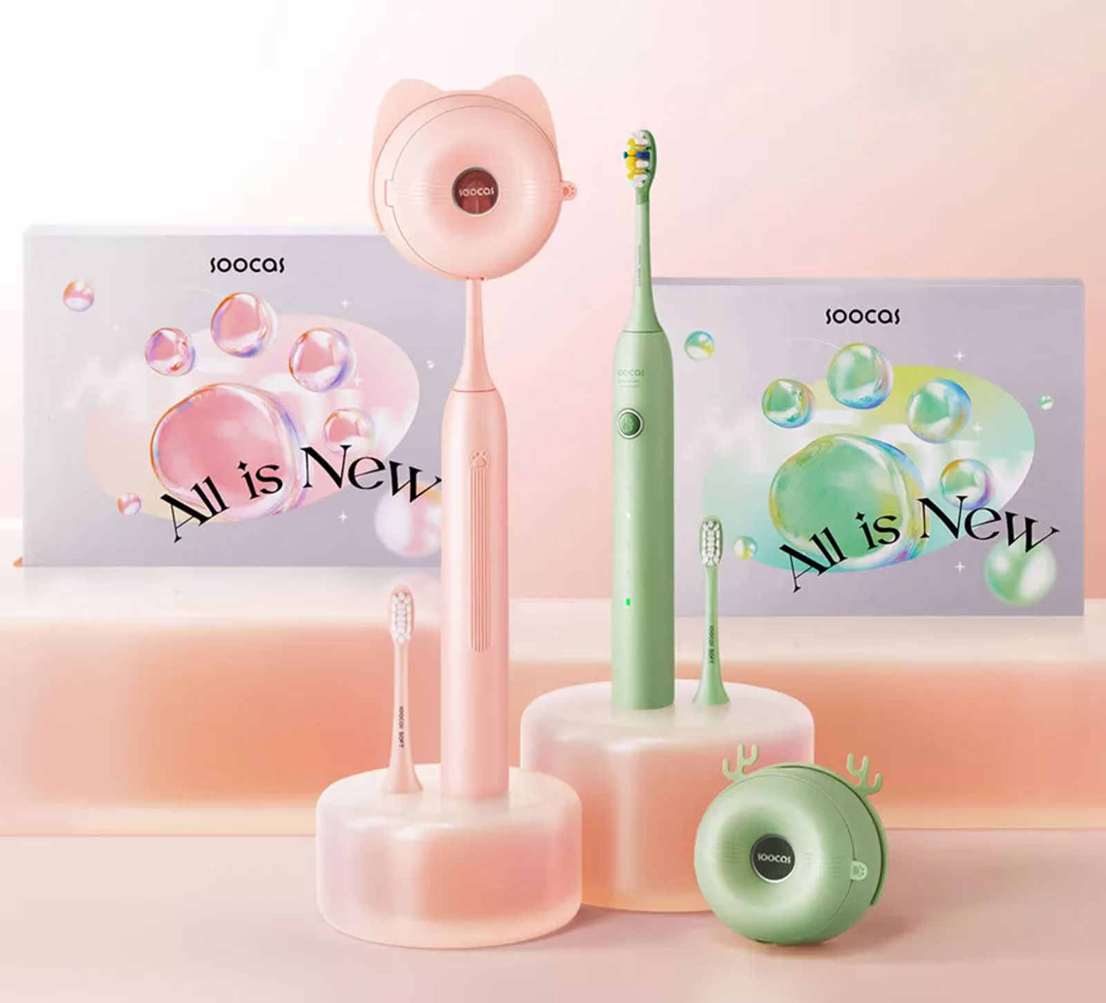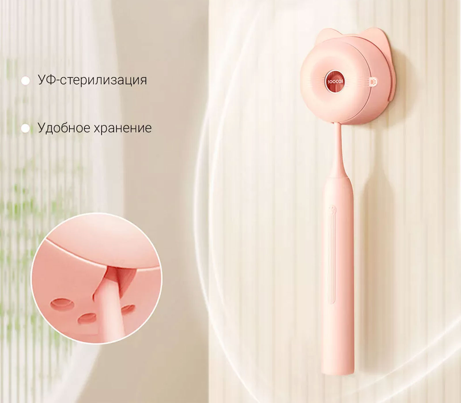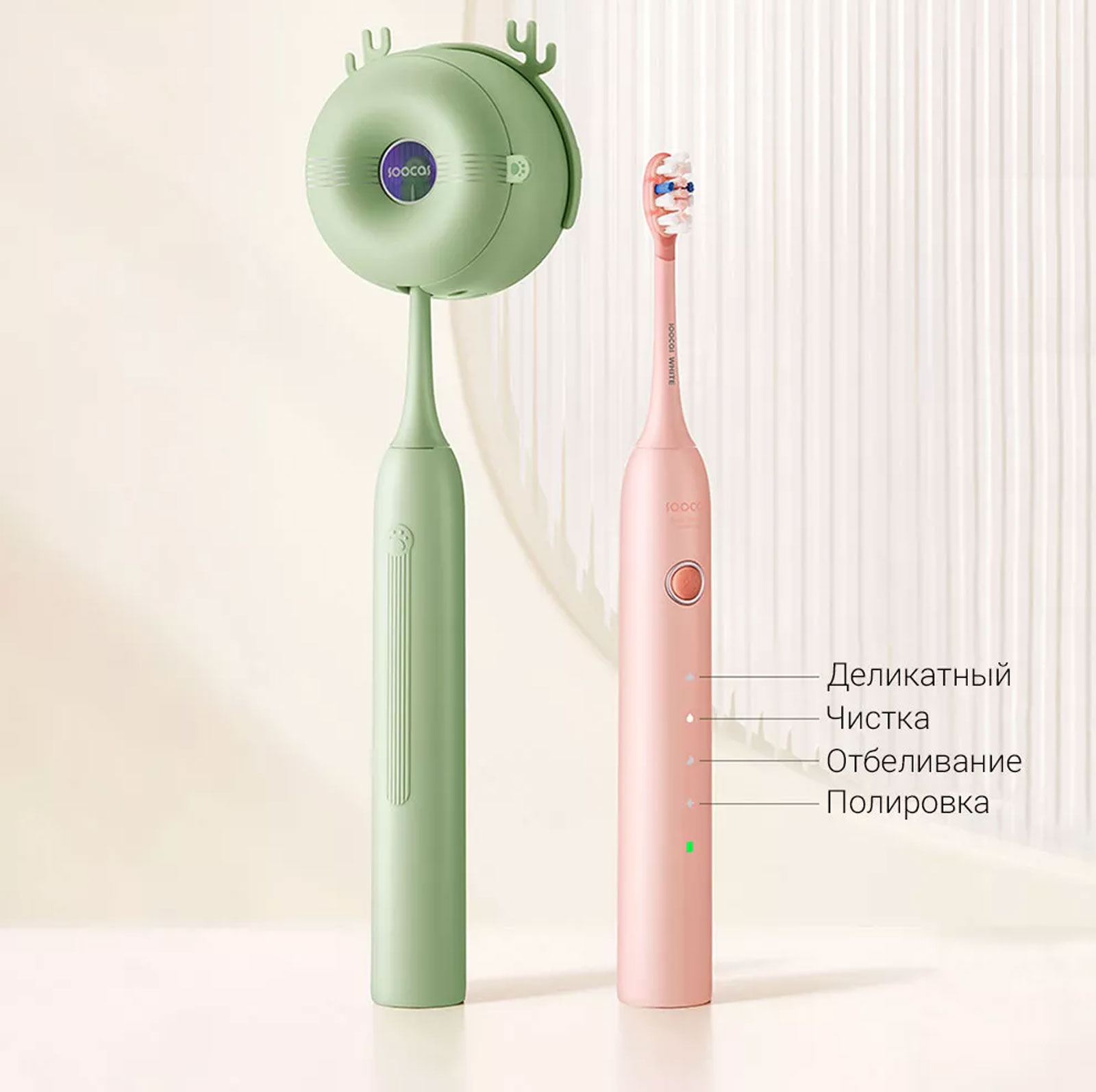 Soocas D3 – электрическая зубная щетка от Xiaomi с забавным дизайном, стерилизатором-держателем и двумя насадками в комплекте. Девайс имеет мягкие щетинки, которые с помощью высокочастотной вибрации (38400 раз/мин) деликатно очищают полость рта. Поддерживается 4 режима работы и до 180 дней автономности.
