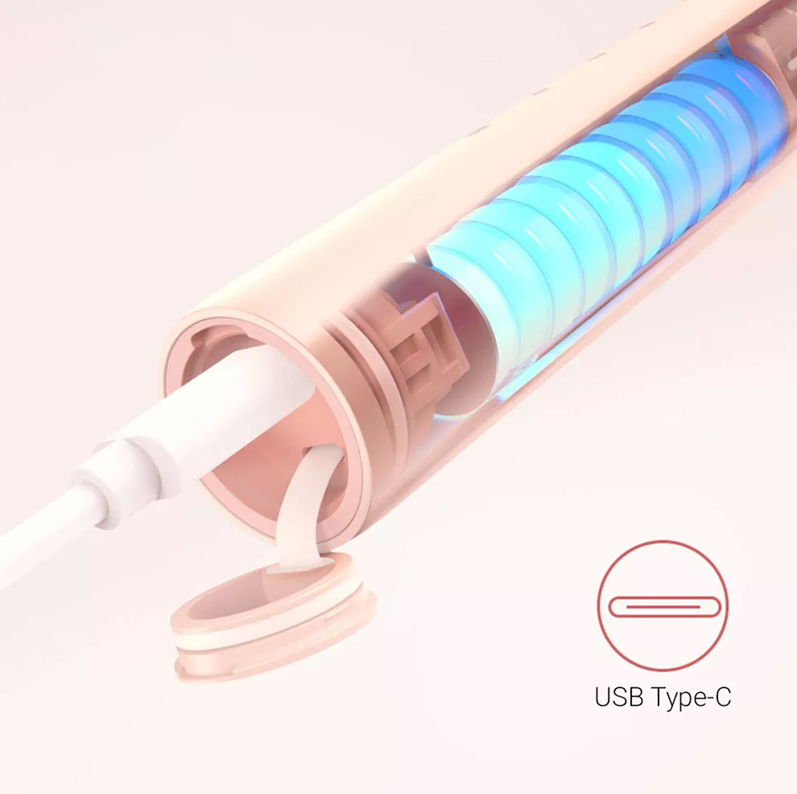 Корпус электрической зубной щетки обладает водонепроницаемостью по стандарту IPX8, поэтому его можно мыть водой. При этом разъем для зарядки надежно защищен силиконовой заглушкой.