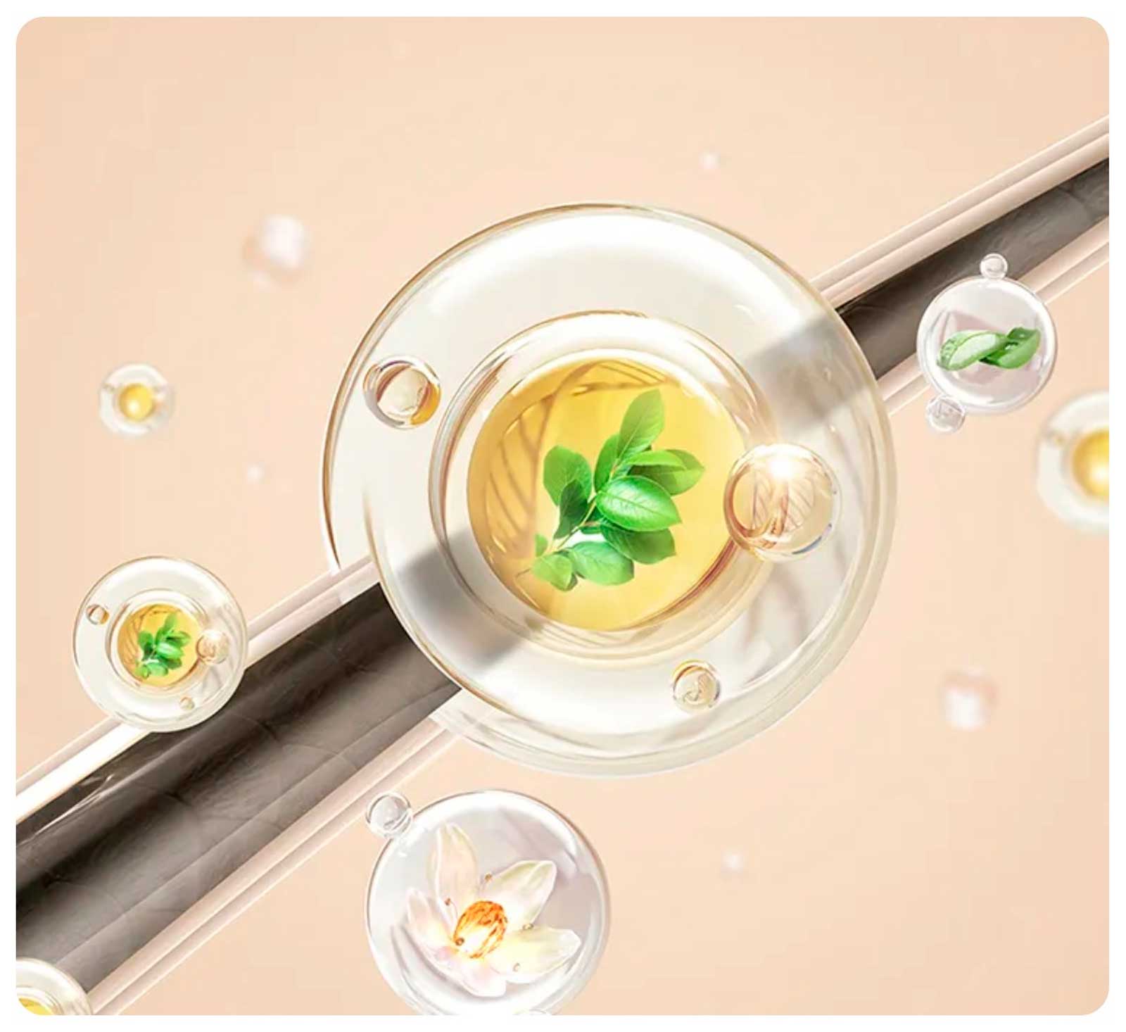 обеспечивая интенсивное увлажнение, восстанавливая повреждения и возвращая волосам естественный блеск. Мягкое проникновение мелких молекул питательных веществ глубоко в волосы помогает улучшить их структуру и здоровье с течением