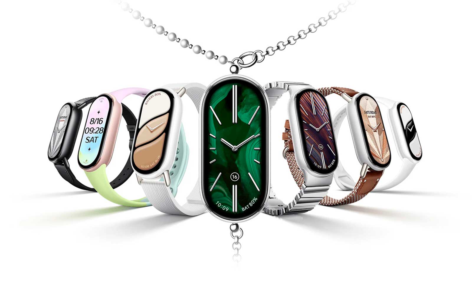 Выберите любой из шести новых ремешков* с классическим и удобным механизмом быстрого снятия. Совершенно новый формат цепочки с подвеской поможет вам разнообразить свой образ и добавить элегантности.