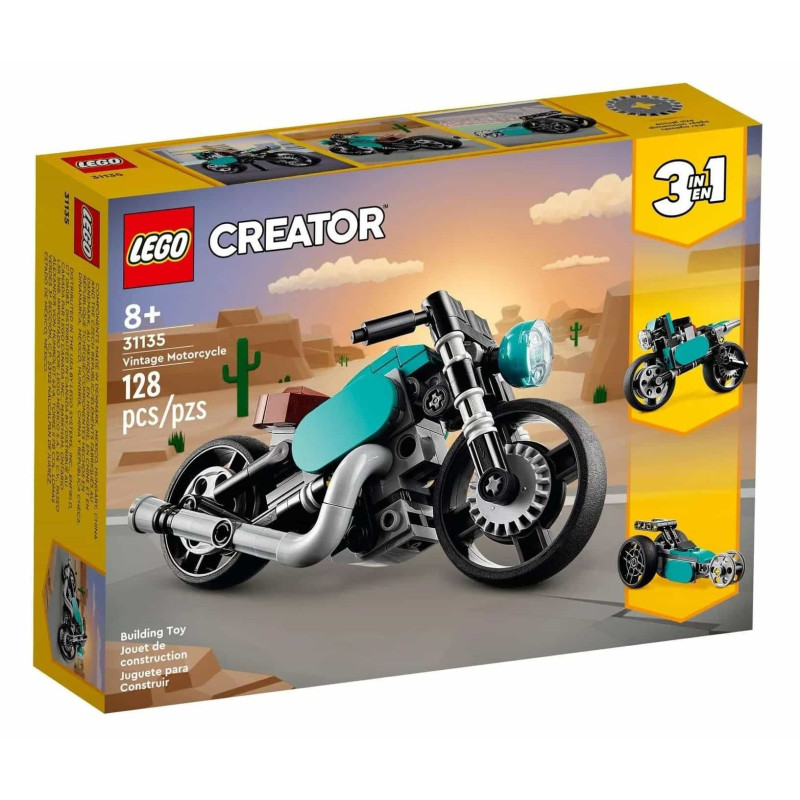 Этот игровой набор LEGO® 3 в 1 позволяет детям собрать три сверхбыстрых транспортных средства: старинный мотоцикл, уличный велосипед и топовый топливный драгстер.