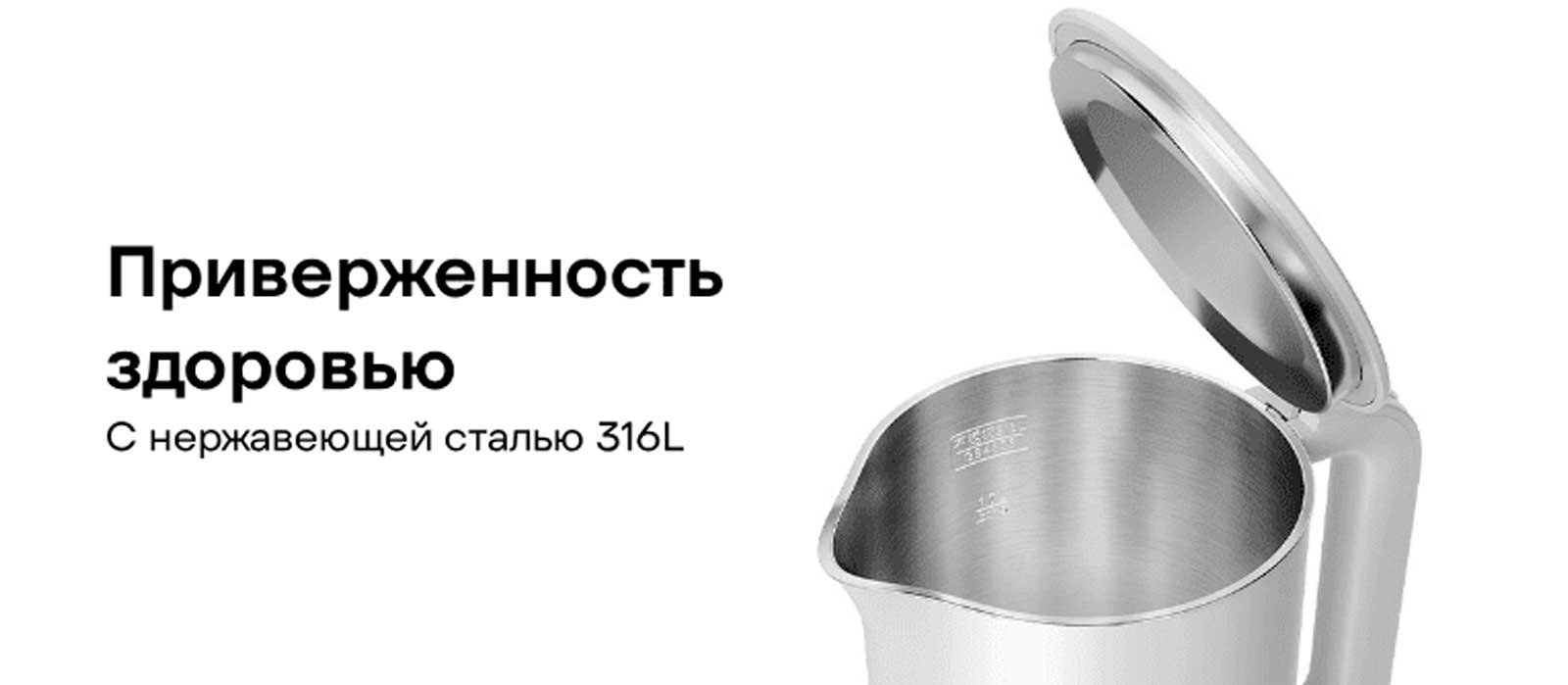 Сердцем этого чайника является внутренний резервуар, изготовленный из пищевой нержавеющей стали 316L. Этот материал превосходит стандартные требования и известен своей превосходной коррозионной стойкостью и безопасностью. Он