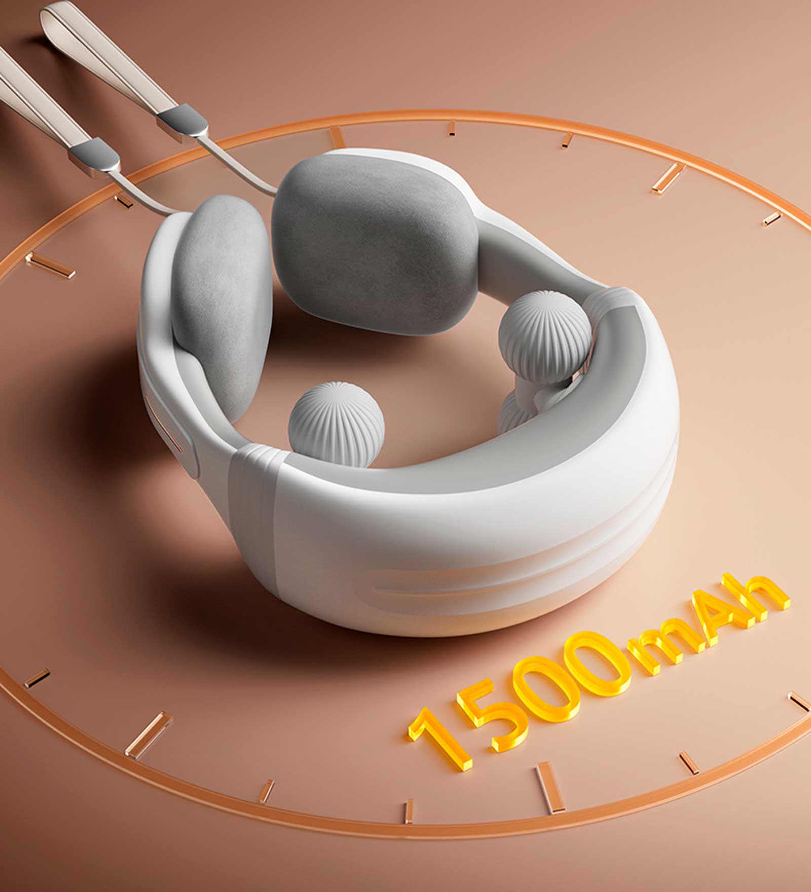 Наслаждайтесь моментами расслабления в любое время. Аккумулятор большой ёмкости 1500 мА·ч, быстрая зарядка, длительная работа. Словно профессиональный «массажист» всегда с вами, заботясь о вашей шее и плечах