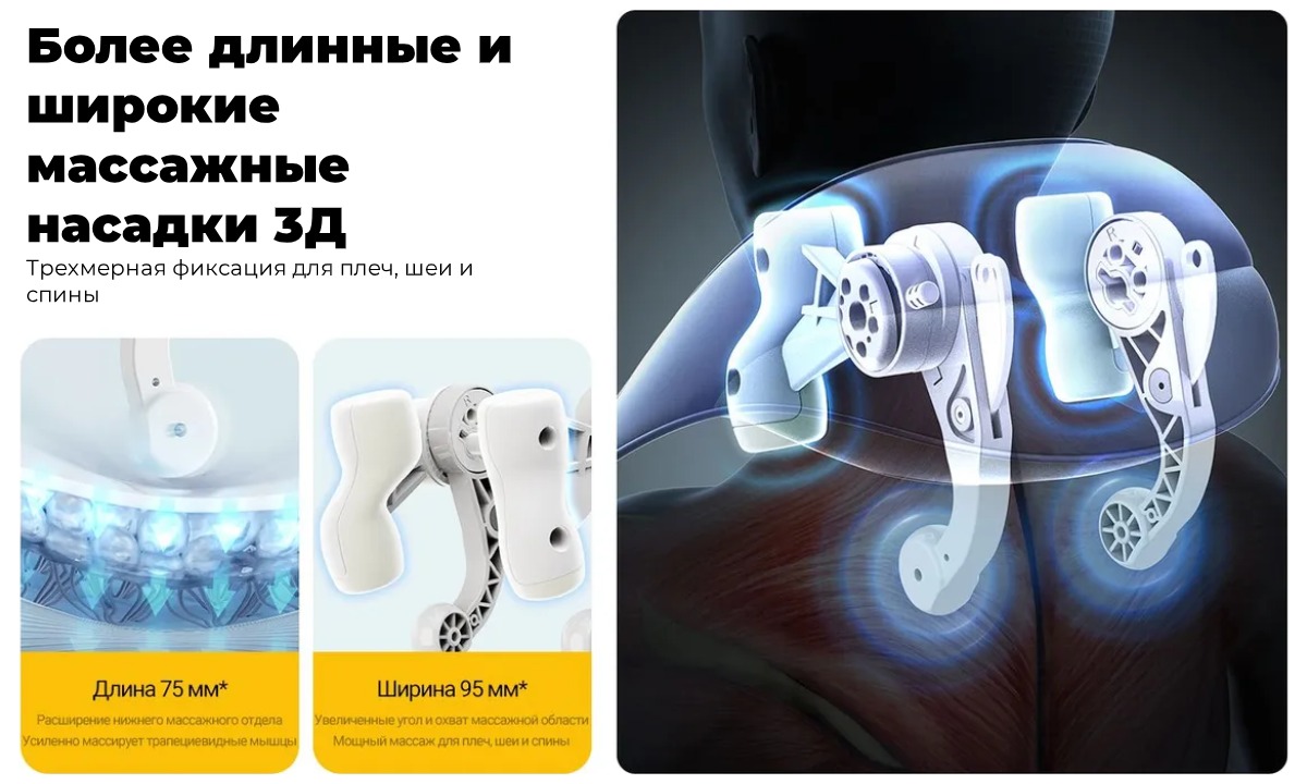 Благодаря более длинным и широким 3D-массажным насадкам DEM-M502N обеспечивает трехмерную фиксацию для оптимального комфорта и эффективности. Эта инновационная технология улучшает общее впечатление от массажа, адаптируясь к контурам