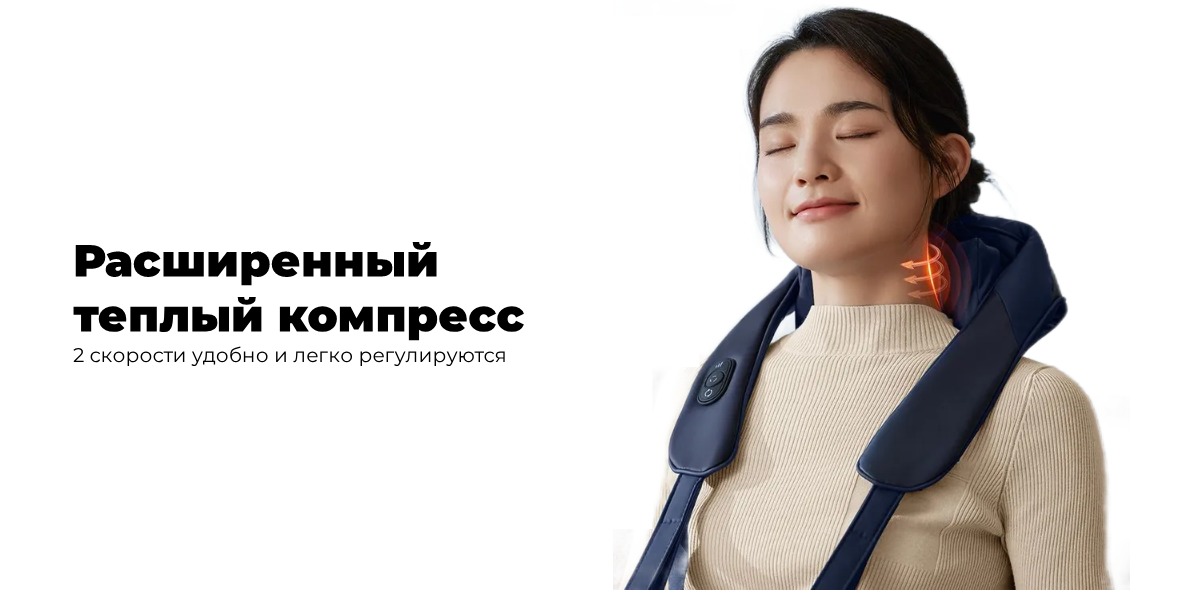 Почувствуйте преимущества длительного теплого компресса в сочетании с массажем. Нежное тепло проникает глубоко в плечи и шею, помогая снять напряжение и усилить расслабление. Благодаря двум регулируемым настройкам скорости вы можете