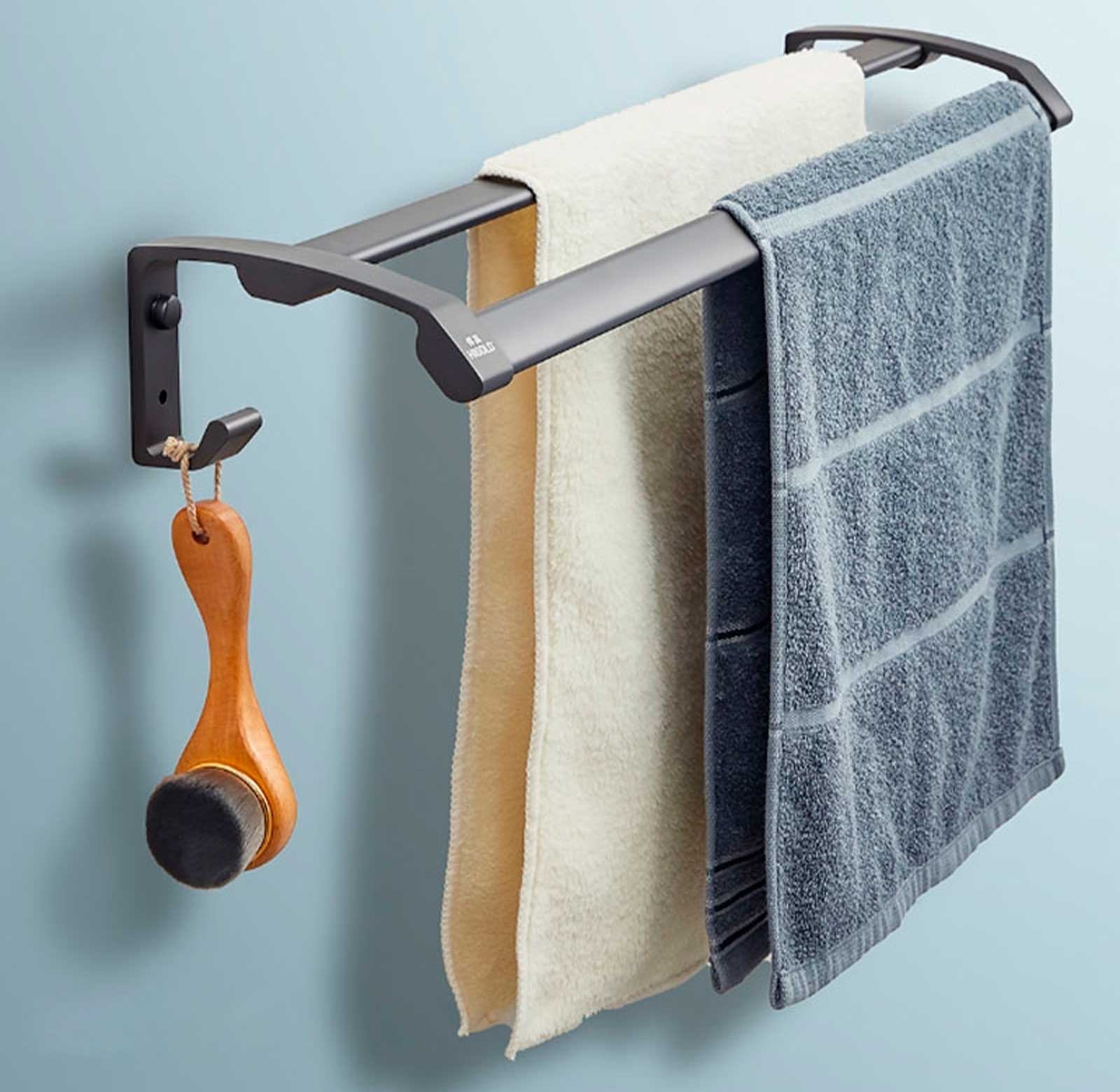 Простота и функциональность полотенцедержателя с двойной перекладиной дают возможность удобно развешивать полотенца. Эргономично расположенные перекладины обеспечивают достаточное пространство для вентиляции, что способствует быстрой сушке полотенец.
