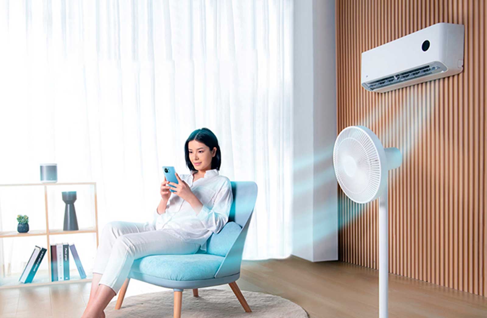 кондиционером, вентилятор Mijia значительно повышает его эффективность, разгоняя образуемый холодный воздух по всей комнате.