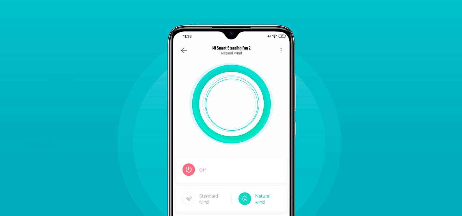 Переключение между режимами «Природный ветер» и «Прямой обдув». Установите скорость вентилятора в диапазоне от 1 до 100 в приложении Mi Home для обеспечения необходимого воздушного потока