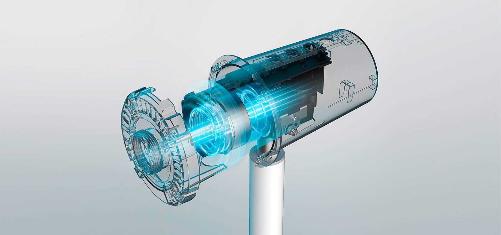 В вентиляторе используется мотор постоянного тока с медной обмоткой, который отличается более высокой эффективностью работы и более длительным сроком службы, чем мотор с алюминиевой обмоткой. Он обеспечивает постоянную скорость для