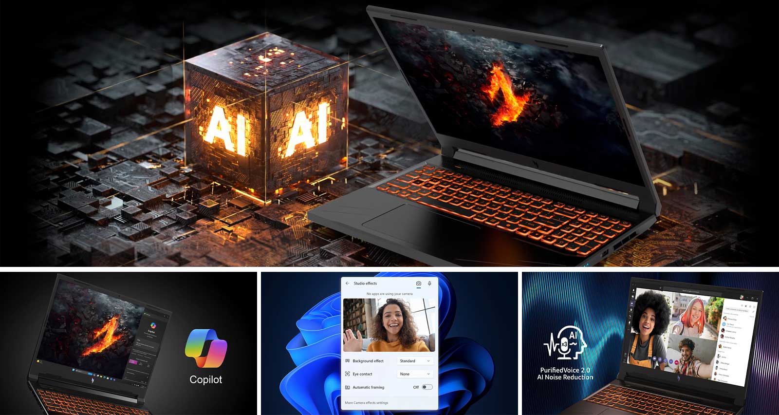 Набор технологий на базе ИИ оптимизирует каждый аспект ноутбука — видеокарту, процессор, память, тепловые характеристики, программное обеспечение, дисплей и многое другое — и позволяет создавать мощные, но при этом тонкие и