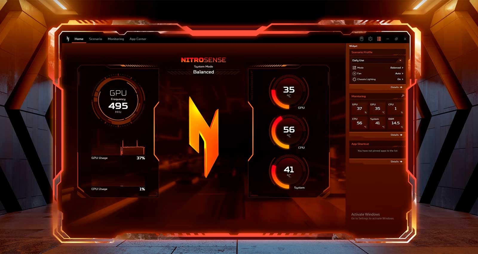 С легкостью контролируйте производительность вашего Nitro V 16 с помощью приложения Sense. Регулируйте скорость вращения вентиляторов, проверяйте состояние системы и оптимизируйте ее для игр или других задач с помощью нескольких