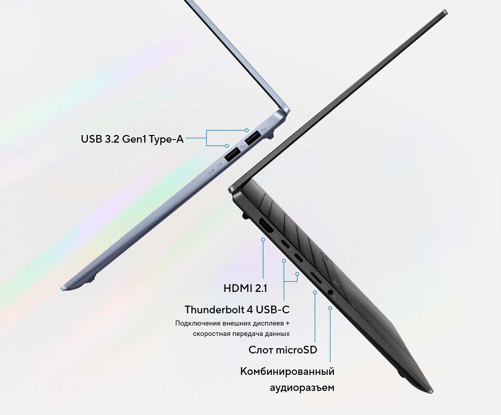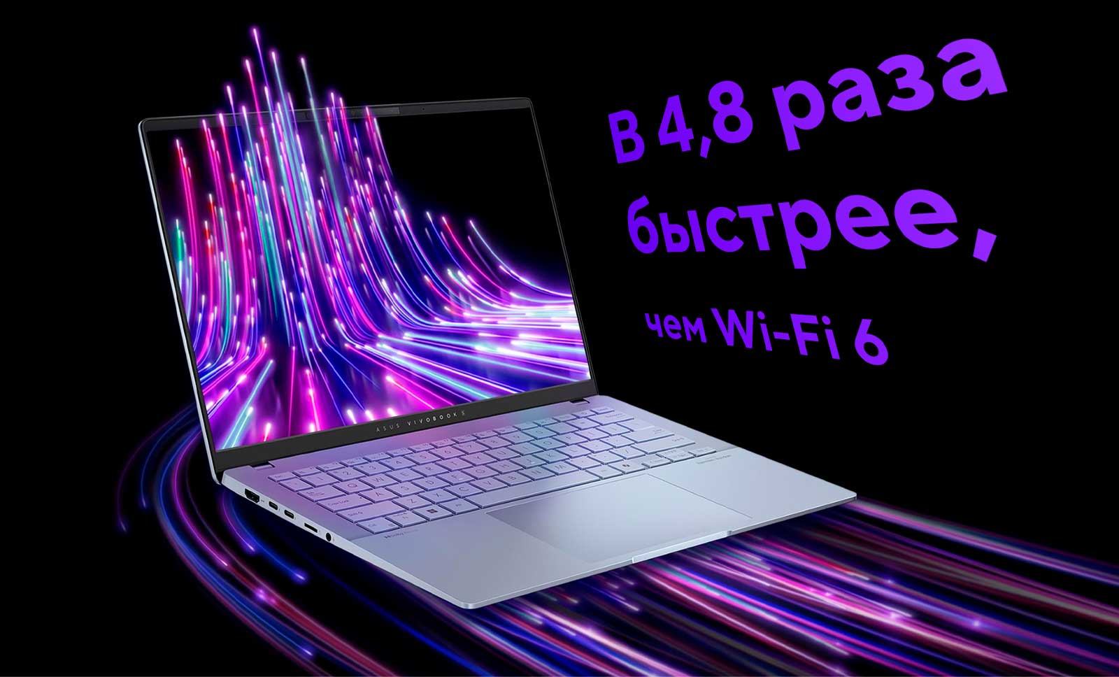 Беспроводной модуль стандарта Wi-Fi 7 в несколько раз быстрее предыдущего Wi-Fi 622, причем ноутбук автоматически выбирает точку доступа с самым сильным сигналом и максимально эффективно использует доступную пропускную способность канала связи. Что касается периферийного беспроводного интерфейса Bluetooth, то коммуникационные и развлекательные возможности расширены и здесь: к ноутбуку можно подключить до трех пар Bluetooth-наушников одновременно.