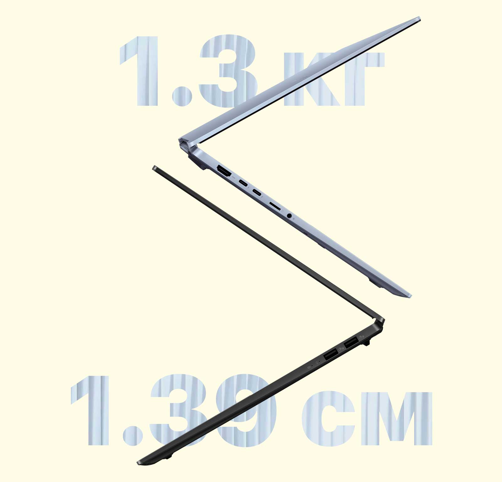 Vivobook S 14 – образец портативности, ведь его толщина составляет всего 1.39 см, а вес – 1.3 кг. Такой ноутбук будет стильным и полезным аксессуаром в любом путешествии.