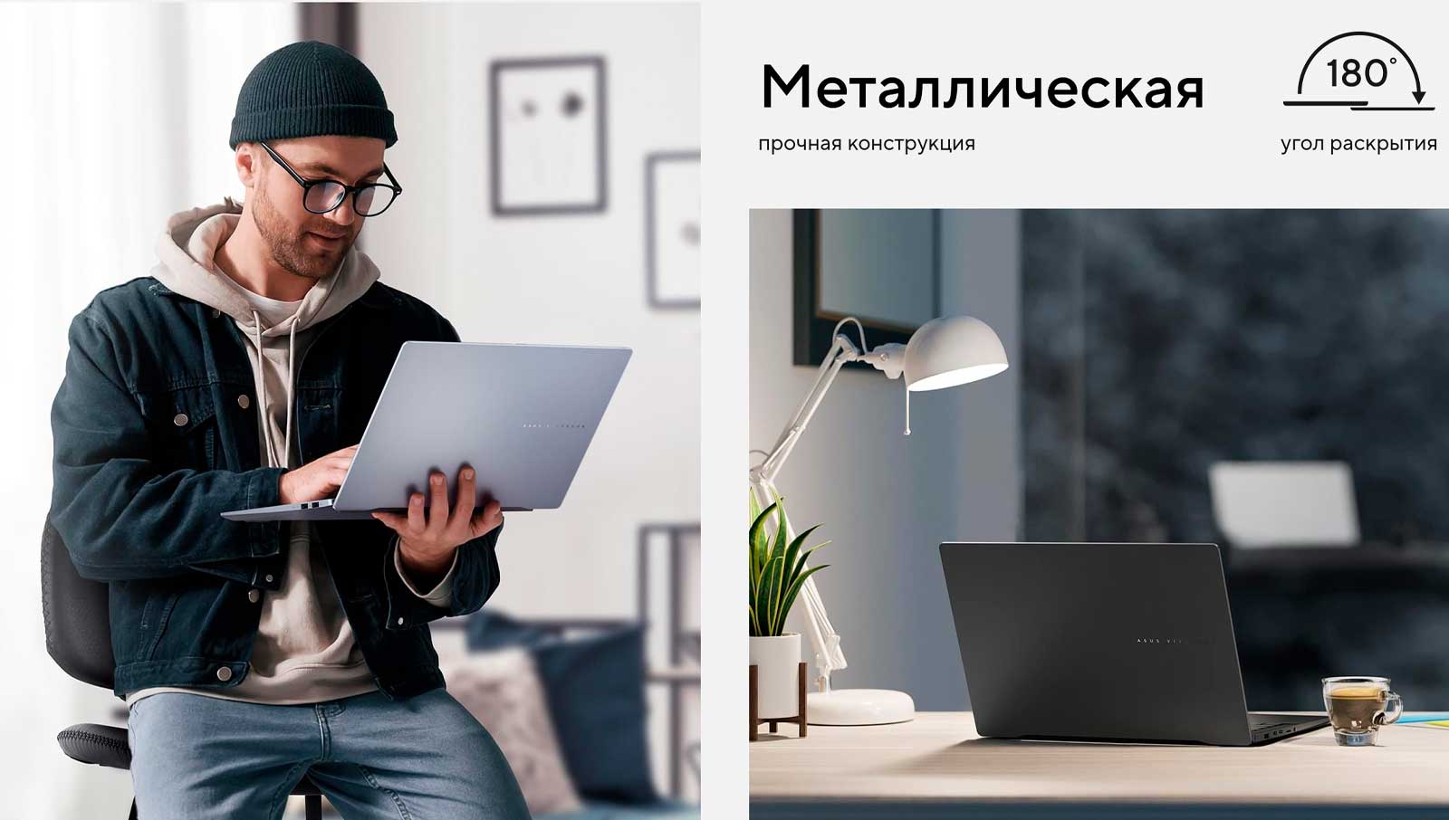 Благодаря стильному, лаконичному дизайну в двух современных цветовых вариантах, черном и синем, ноутбук Vivobook S 14 станет отражением безупречного вкуса его владельца. Для комфорта пользователя устройство может раскрываться на любой угол в пределах 180 градусов.