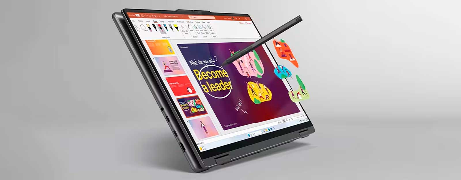 используя при этом быстрые клавиши на клавиатуре во всю ширину корпуса для мгновенного доступа к любимым приложениям и папкам. Или набросайте следующий дизайн в режиме планшета с помощью цифрового пера, которое волшебным образом