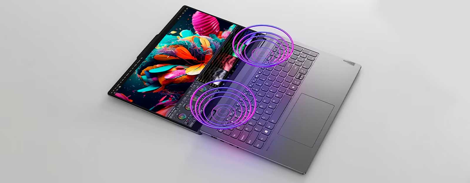 Зрение и слух соединяются на просторном 16-дюймовом дисплее WUXGA ноутбука Yoga 7 2-в-1, который обеспечивает погружение в формате Dolby Vision® и оснащён 10-точечной мультитач-панелью из стекла. Благодаря более высокому экрану с