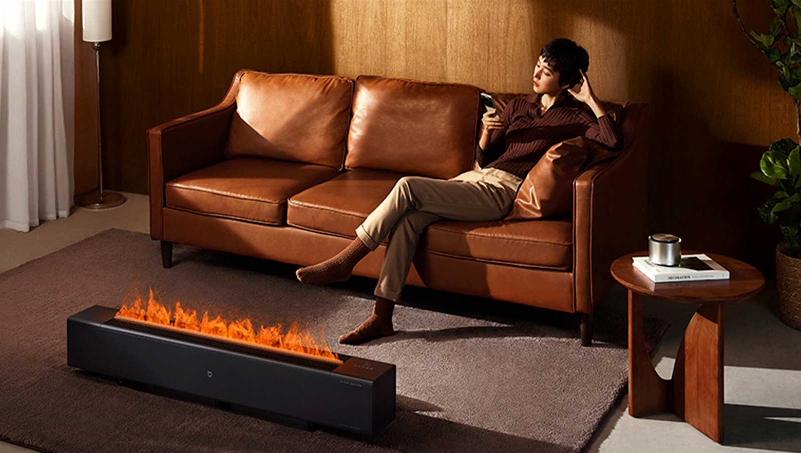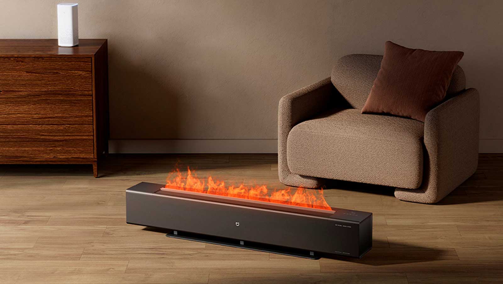 Электрический обогреватель MIJIA Graphene Baseboard Electric Heater Simulation Flame Version — обогреватель с функцией увлажнения помещения и имитацией настоящего пламени, как в камине. Поддерживает управление через приложение Mi
