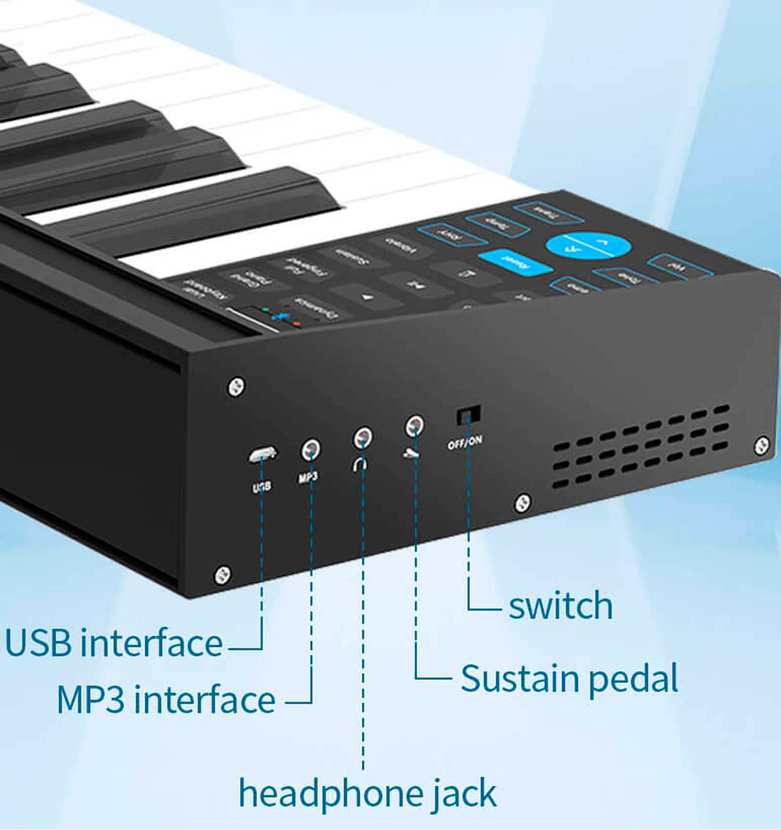 Цифровой дисплей, клавиша регулировки громкости, клавиша регулировки темпа. Функция динамики, Trans, Syncho, запись, программирование и сброс, Dual Voice, функция Bluetooth MIDI и т. д.
