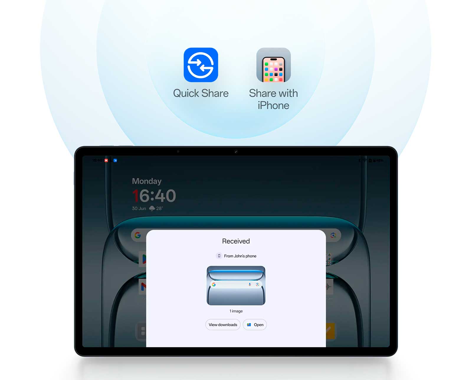 Преодолевайте барьеры между разными ОС, семьей и друзьями. Получайте файлы, видео и изображения или и делитесь ими с устройствами iPhone или Android за несколько простых касаний