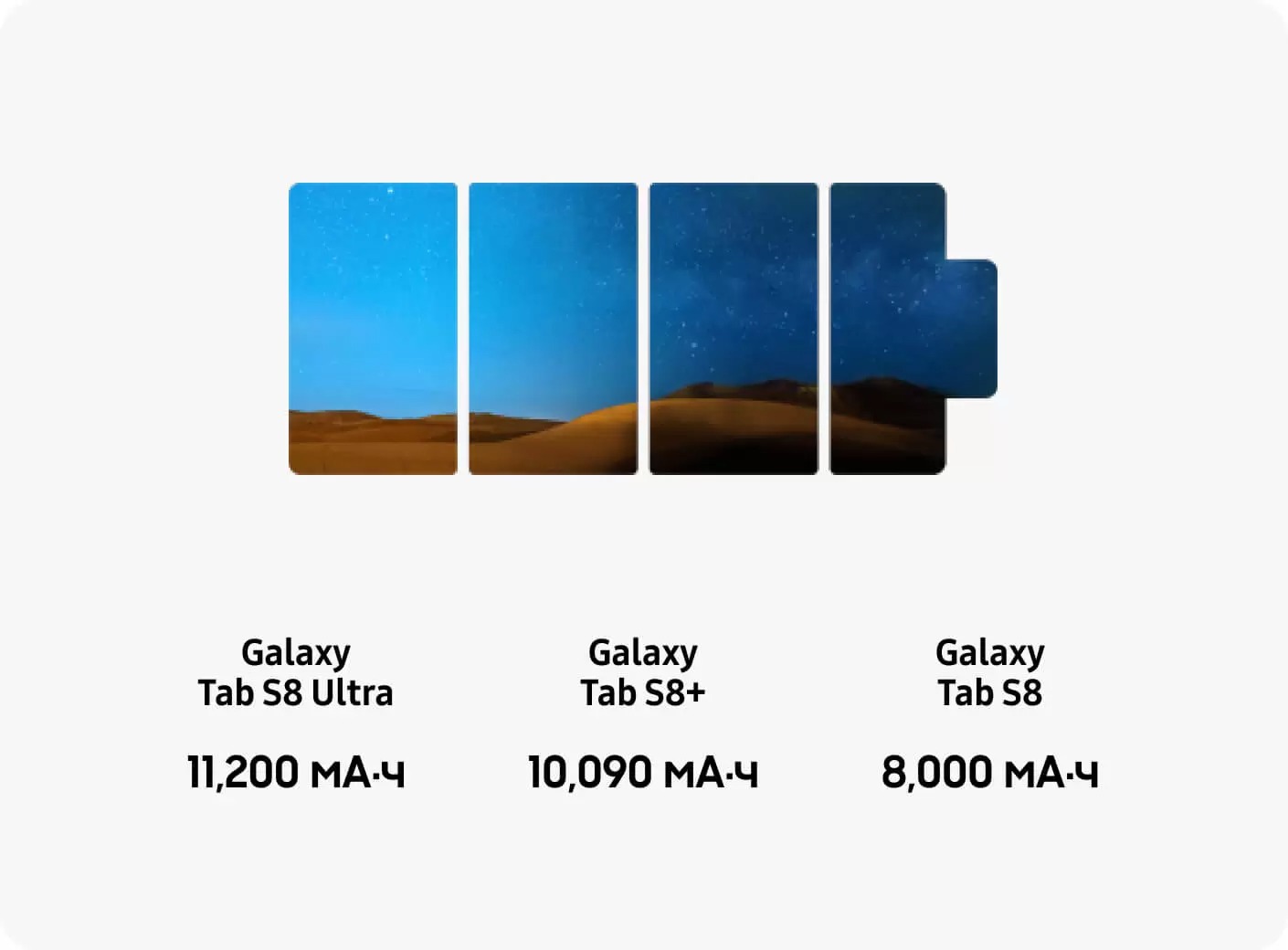 Мощный интеллектуальный аккумулятор позволит вам с легкостью устраивать киномарафоны, а поддержка супербыстрой зарядки 45 Вт в считанные минуты вернет вашему планшету 100% зарядки