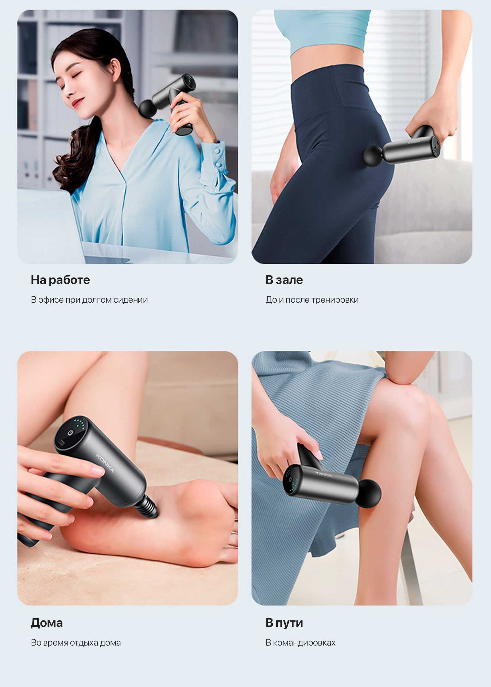 Идеальный компактный и легкий дизайн, размером с ладонь, легко помещается в сумку. Наслаждайтесь массажем в дороге.