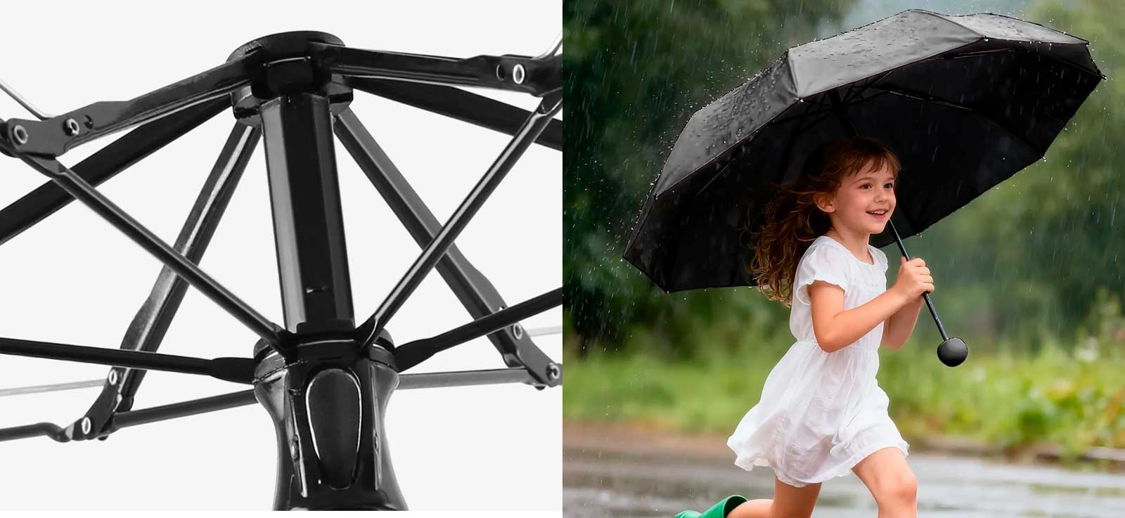 спиц обеспечивает стабильность при ветре и защищает зонт от повреждений во время дождя.