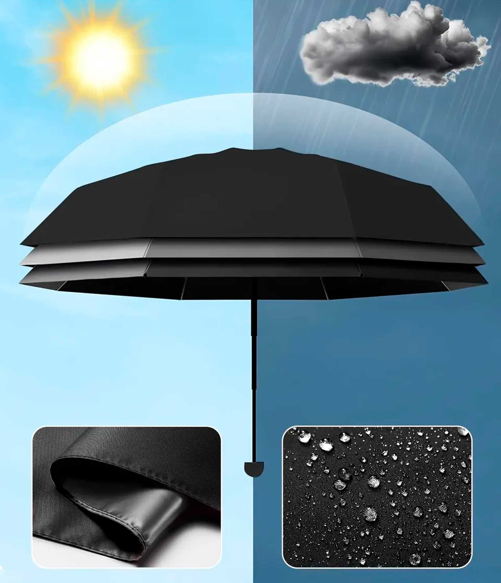 Это стильное и надёжное решение для защиты от дождя и солнца
