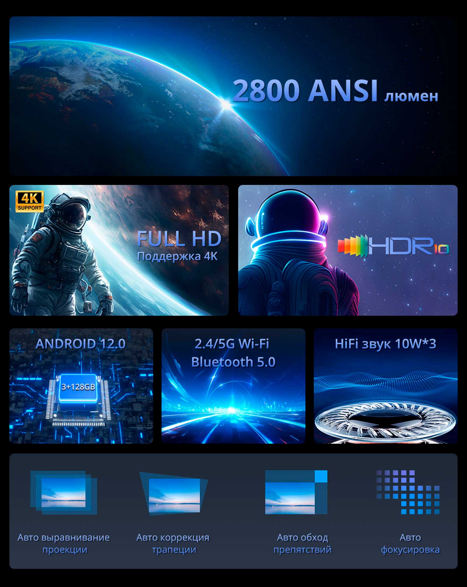Автоматически обнаруживает и избегает препятствия, обеспечивая идеальную проекцию