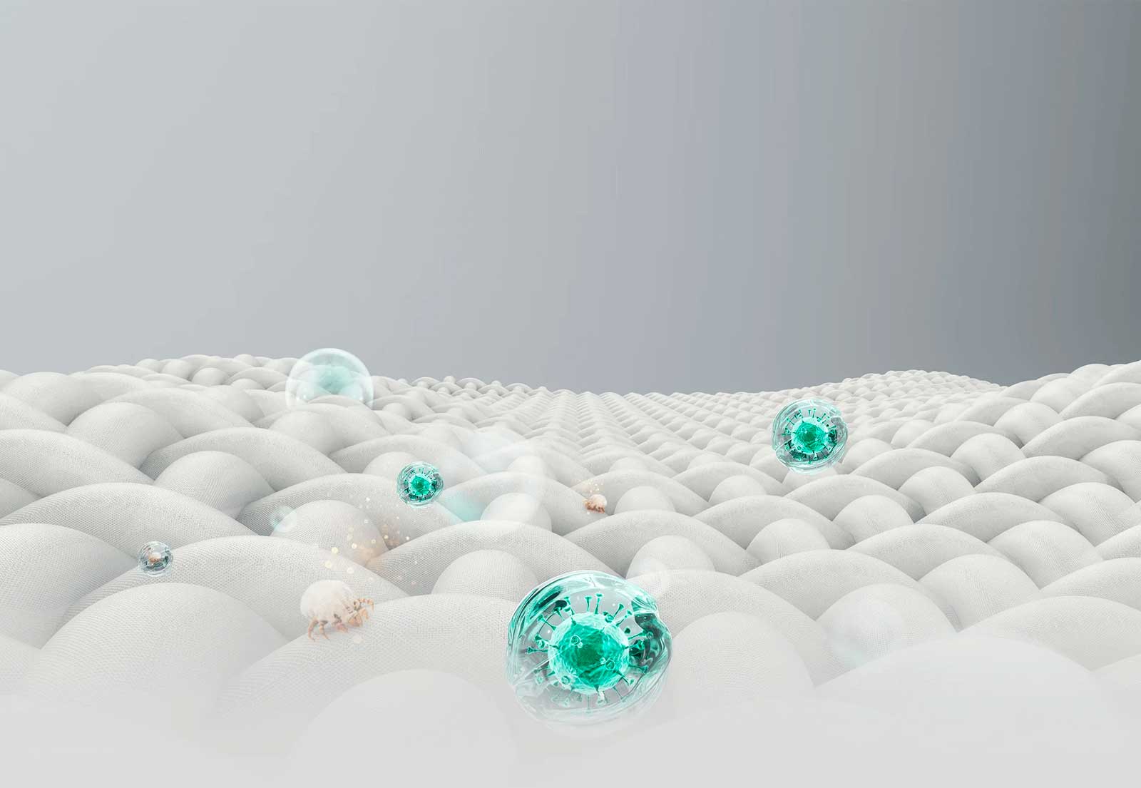 Удаление клещей и бактерий. Ультрафиолетовый свет с длиной волны 254 нм облучает ткань постельного белья, разрушая клеточную структуру бактерий и клещей. Он обеспечивает стерилизацию и удаляет клещей для комфортного сна.
