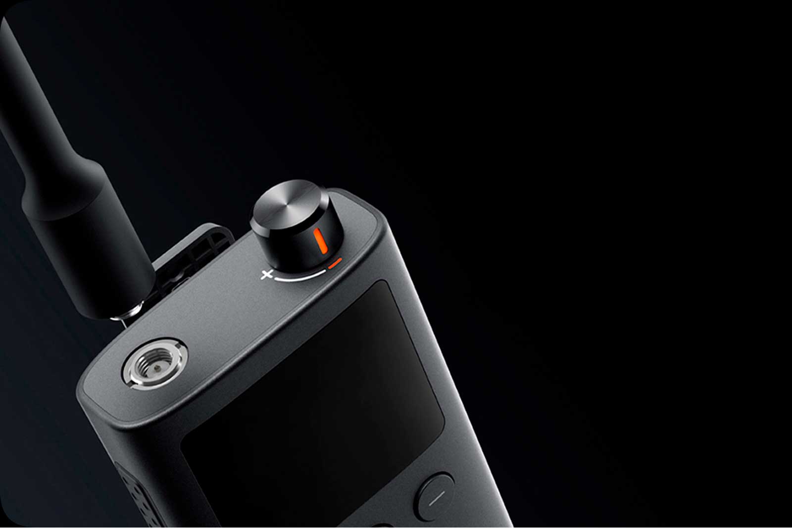 использования в любых условиях. На передней панели расположен монохромный дисплей с разрешением 192 x 142 пикселей, который чётко отображает основную информацию, такую как текущий канал, уровень сигнала и заряд батареи.