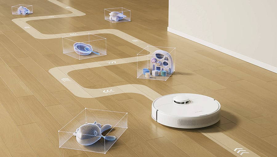 Благодаря интеллектуальной системе устройство обеспечивает тщательную уборку без пропущенных участков и столкновений с препятствиями.